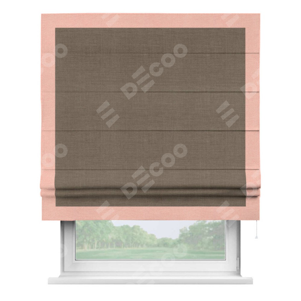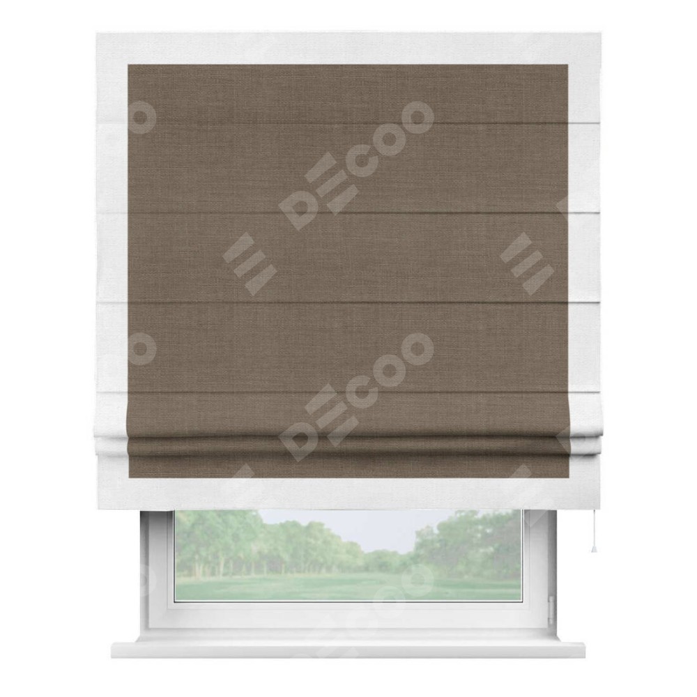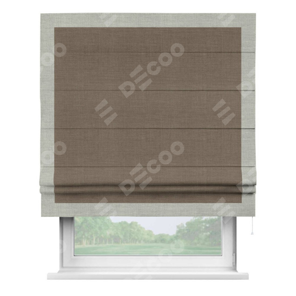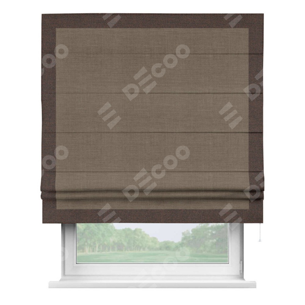 Римская штора «Кортин» с кантом Чесс, для проема, ткань лён мокко