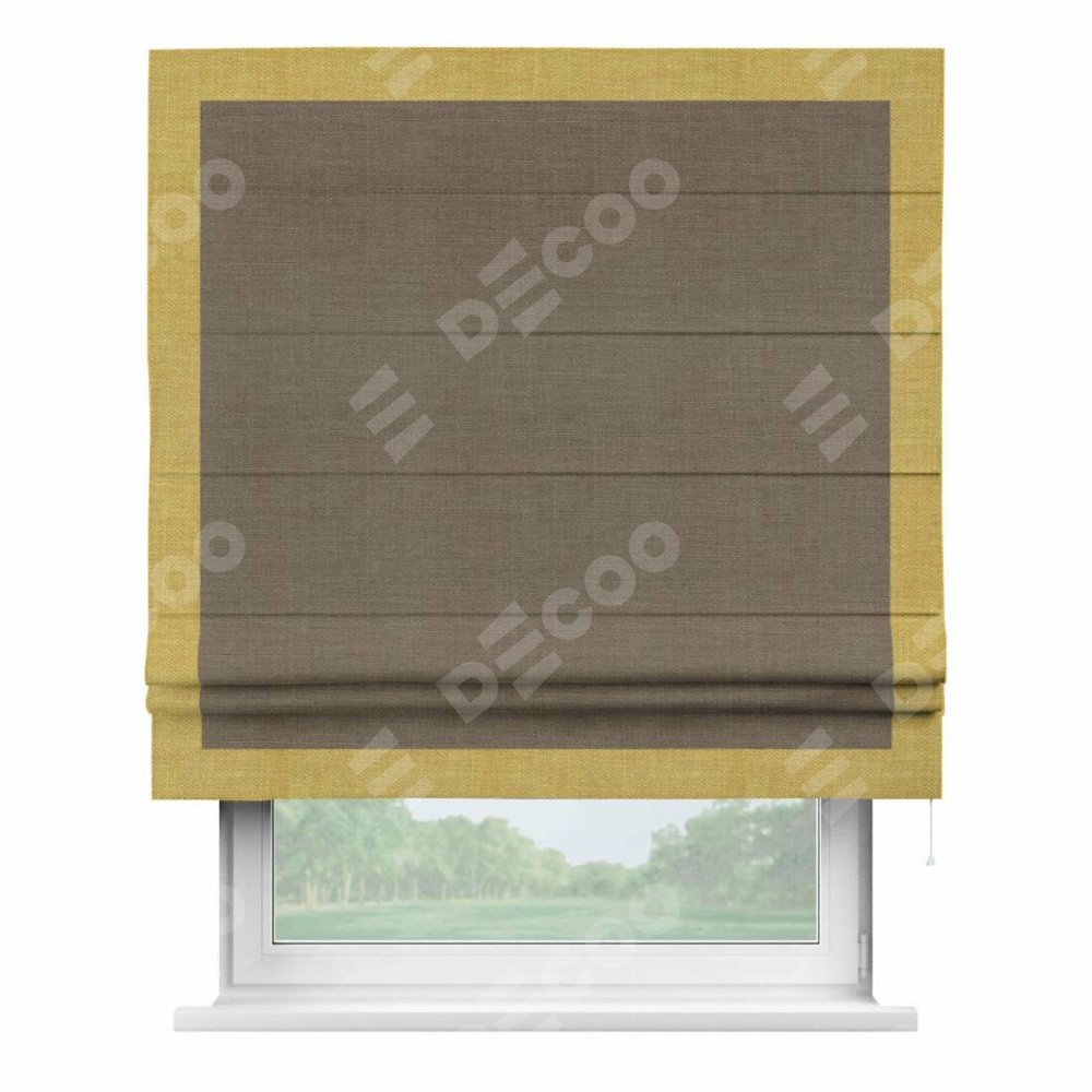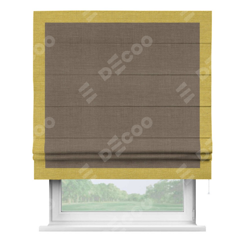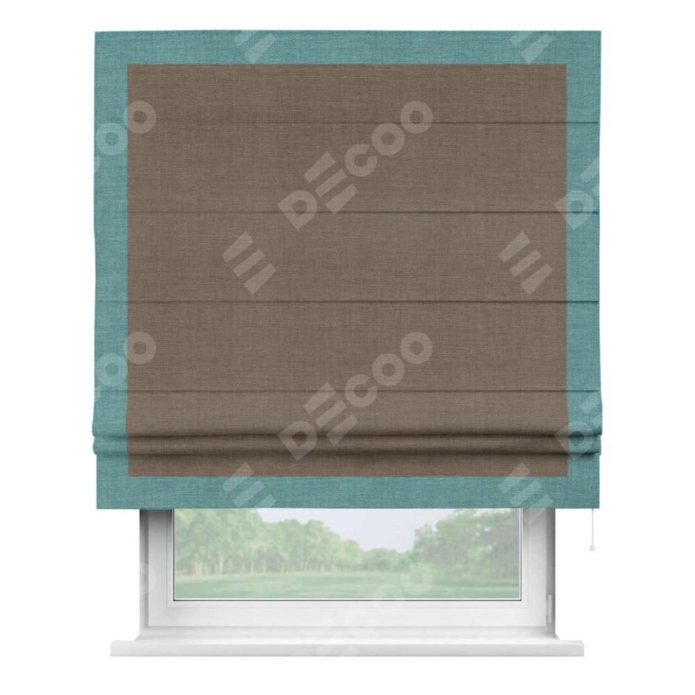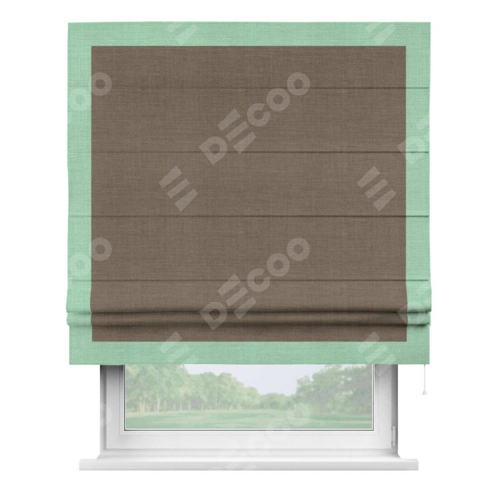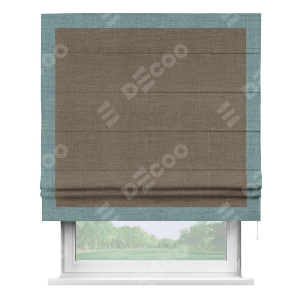 Римская штора «Кортин» с кантом Чесс, для проема, ткань лён мокко