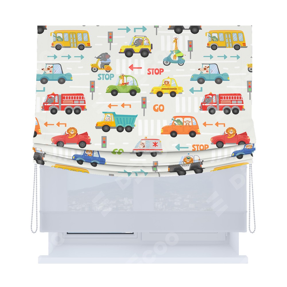 Римская штора «Кортин», день-ночь с мягкими складками, «Дорожные правила»