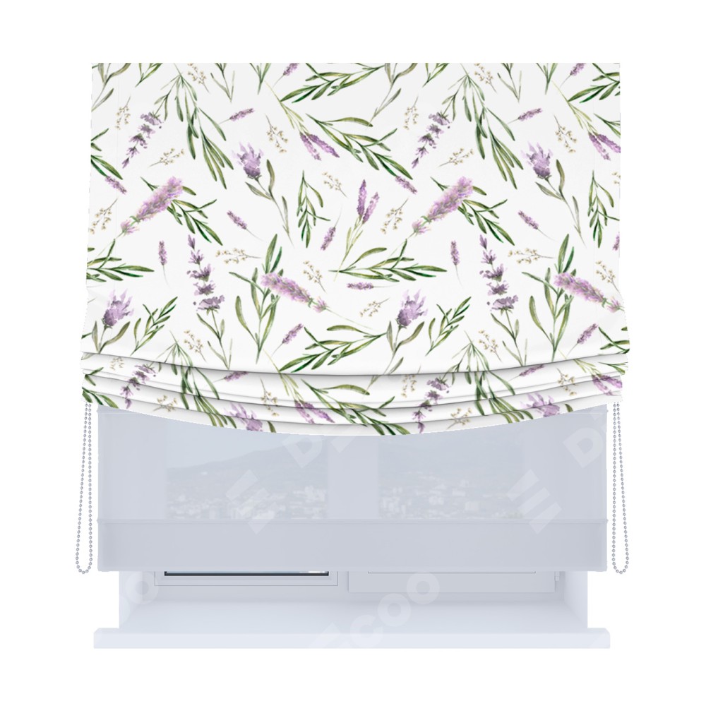 Римская штора «Кортин», день-ночь с мягкими складками, «Лавандовое поле»