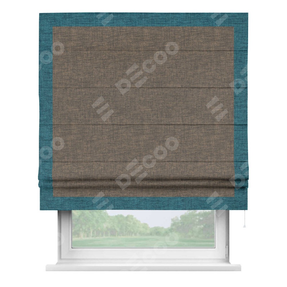 Римская штора «Кортин» с кантом Чесс, для проема, ткань рогожка димаут, коричневый