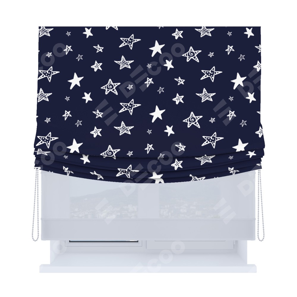 Римская штора «Кортин», день-ночь с мягкими складками, «Ночные звёзды»