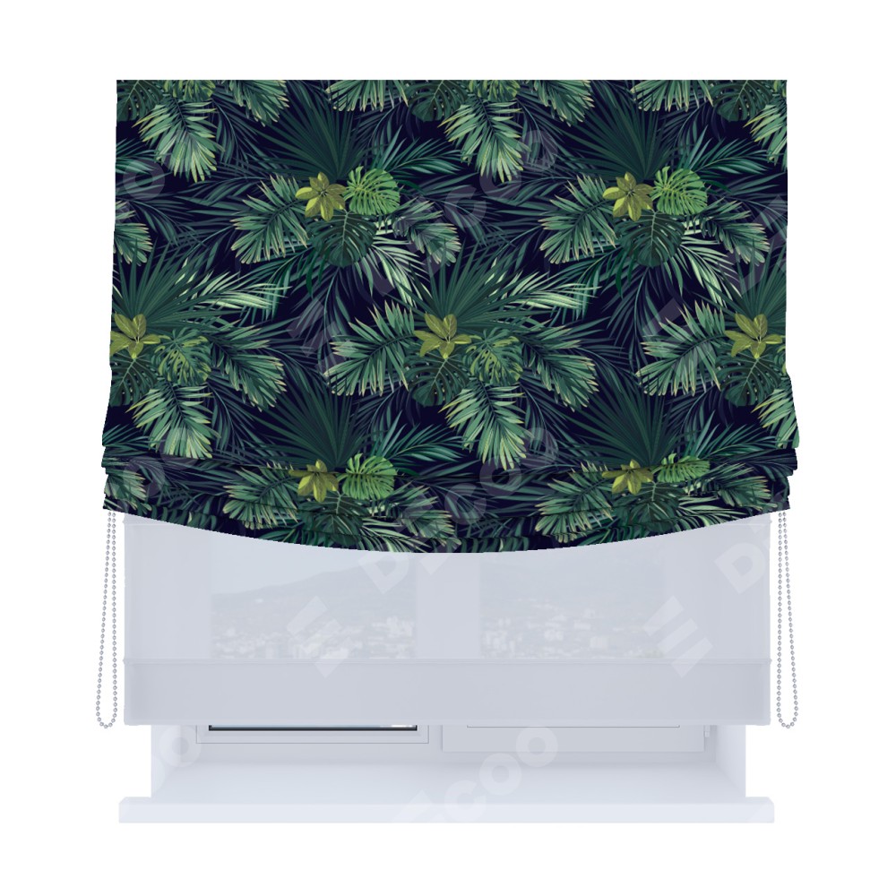 Римская штора «Кортин», день-ночь с мягкими складками, «Пальмовые листья»