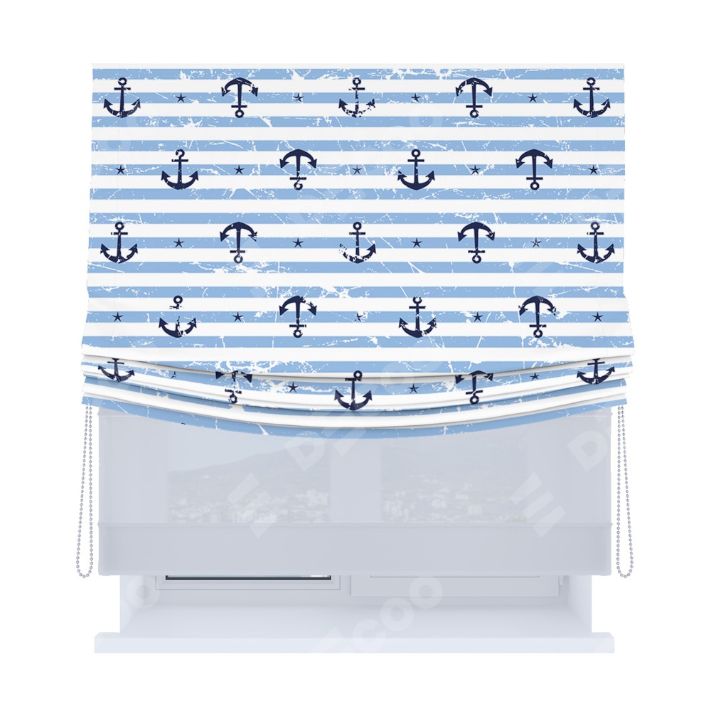 Римская штора «Кортин», день-ночь с мягкими складками, «Полоски и якори»