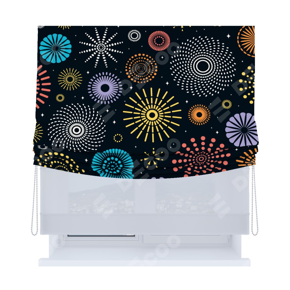 Римская штора «Кортин», день-ночь с мягкими складками, «Праздничный фейерверк»