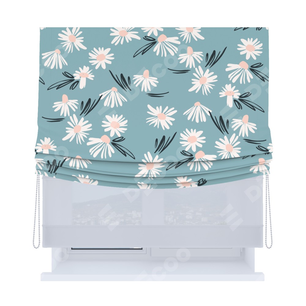 Римская штора «Кортин», день-ночь с мягкими складками, «Чудесные ромашки»