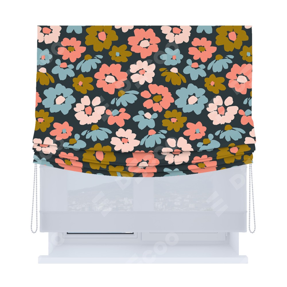 Римская штора «Кортин», день-ночь с мягкими складками, «Яркие цветы»