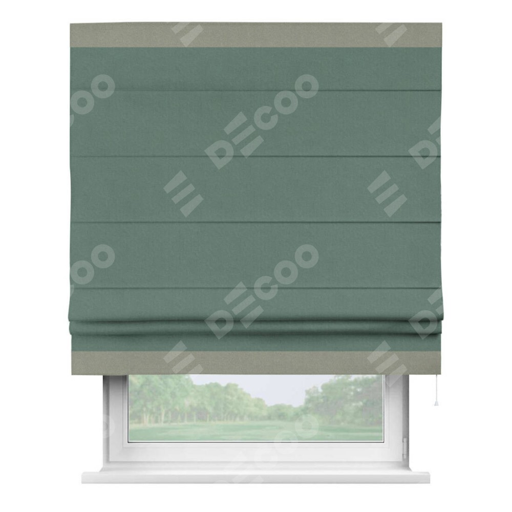 Римская штора «Кортин» с кантом Горизонт, для проема, лён блэкаут бирюзовый