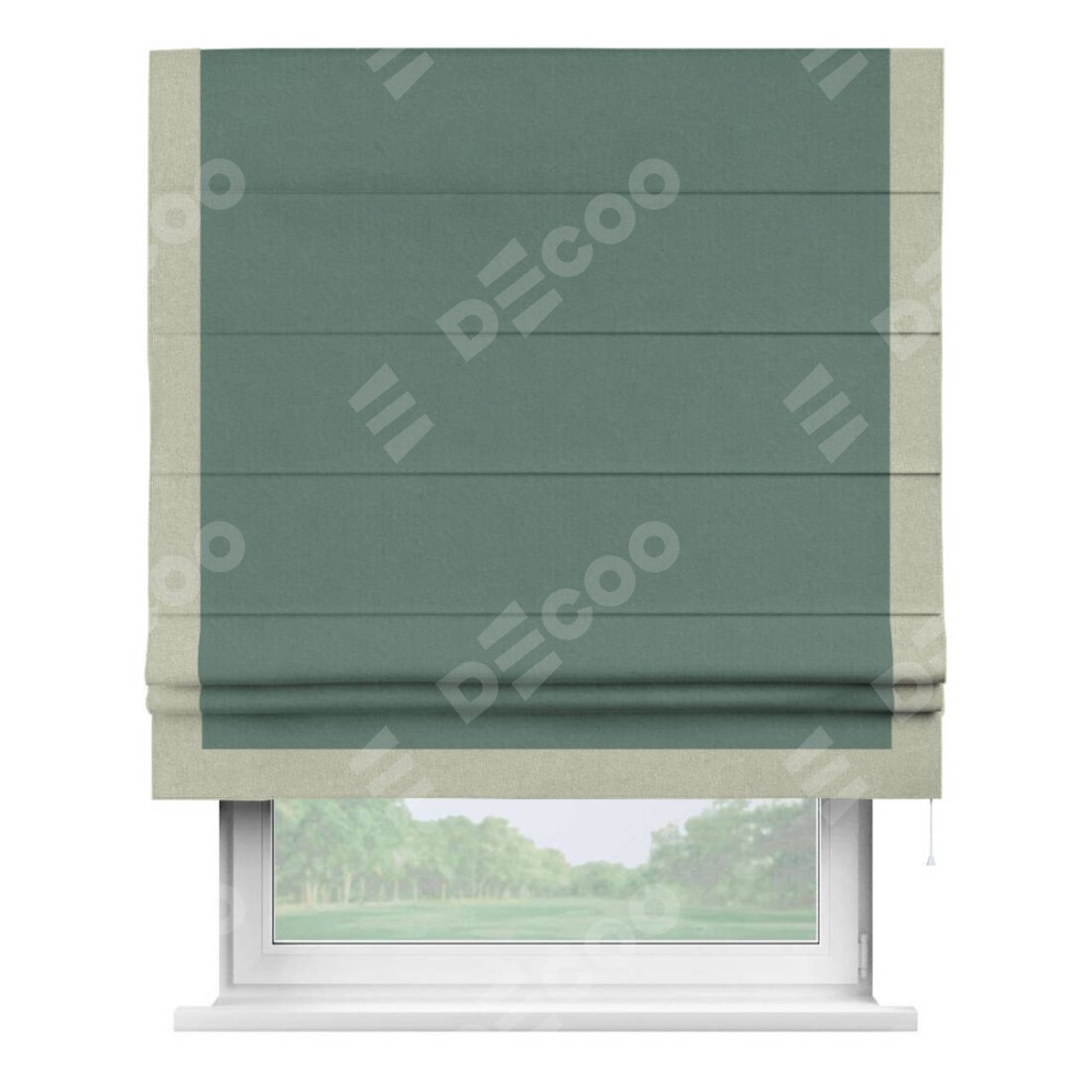 Римская штора «Кортин» с кантом Виктория, для проема, лён блэкаут бирюзовый