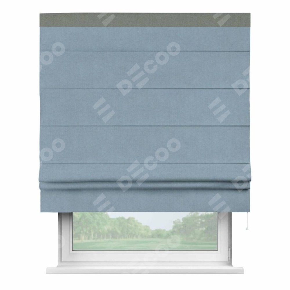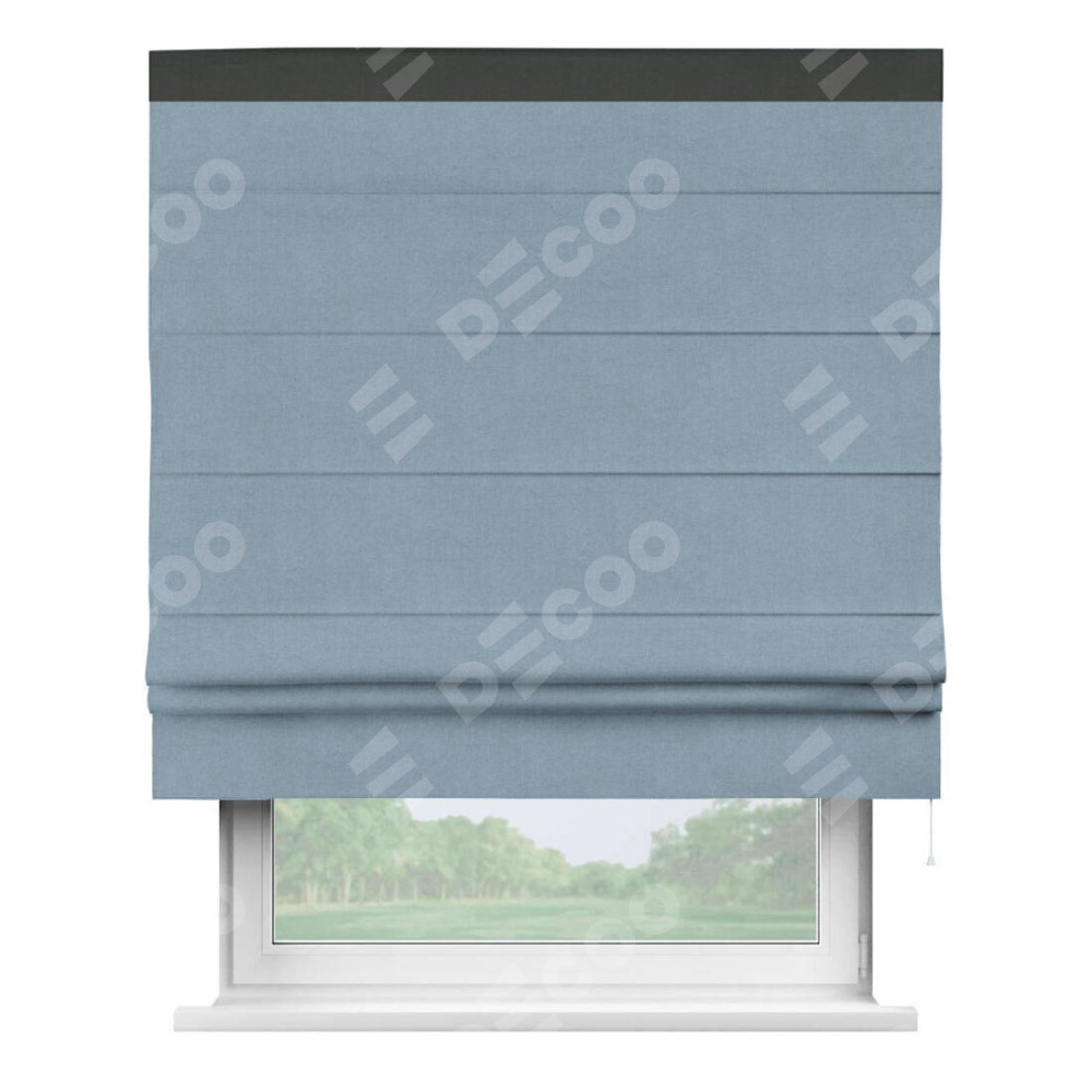 Римская штора «Кортин» с кантом Кинг, для проема, лён блэкаут голубой