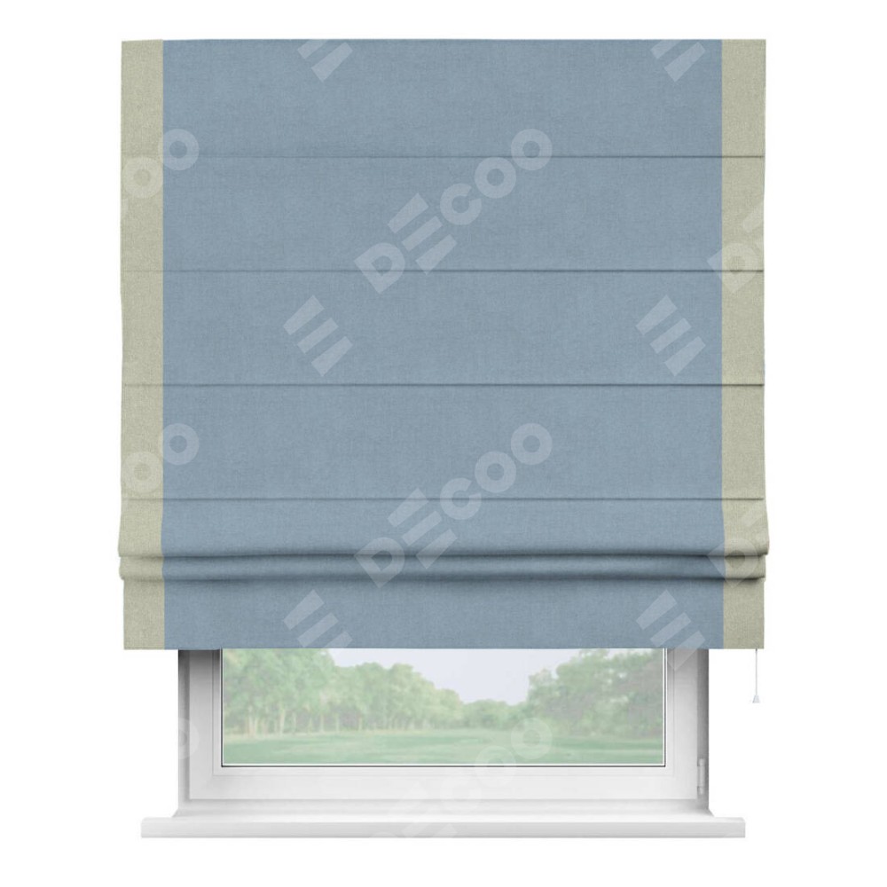 Римская штора «Кортин» с кантом Стрим Дуо, для проема, лён блэкаут голубой