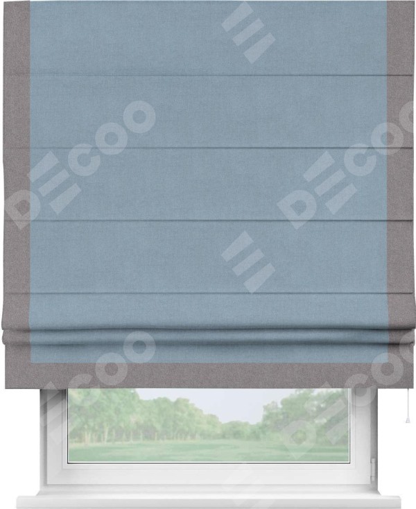 Римская штора «Кортин» с кантом Виктория, для проема, лён блэкаут голубой