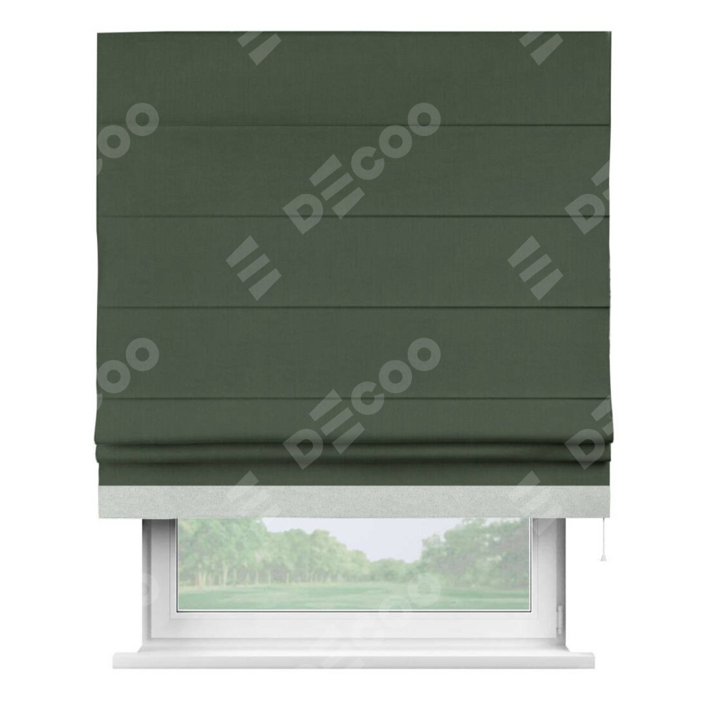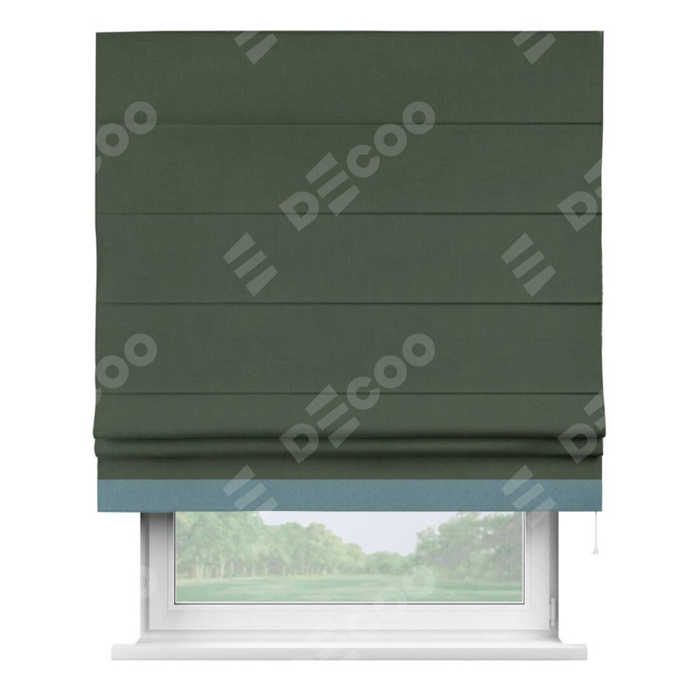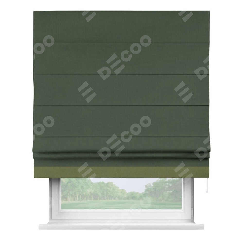 Римская штора «Кортин» с кантом Джестер, для проема, лён блэкаут зелёный