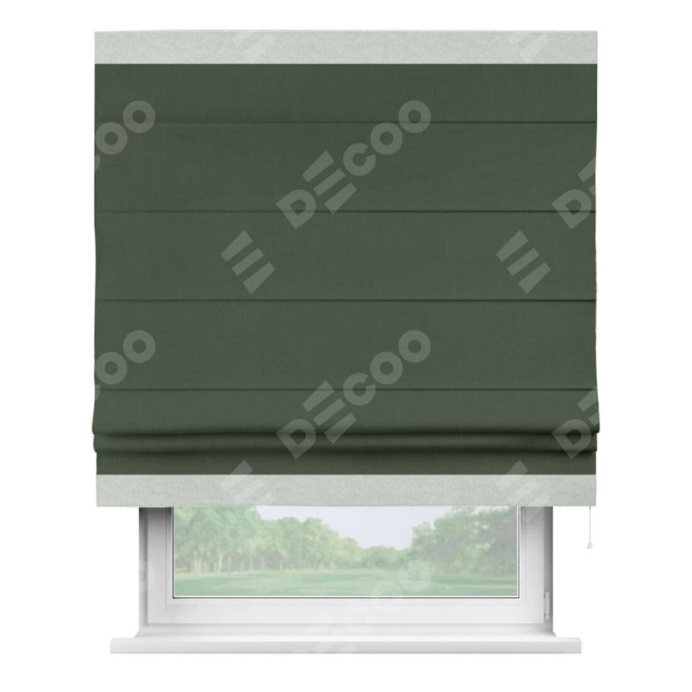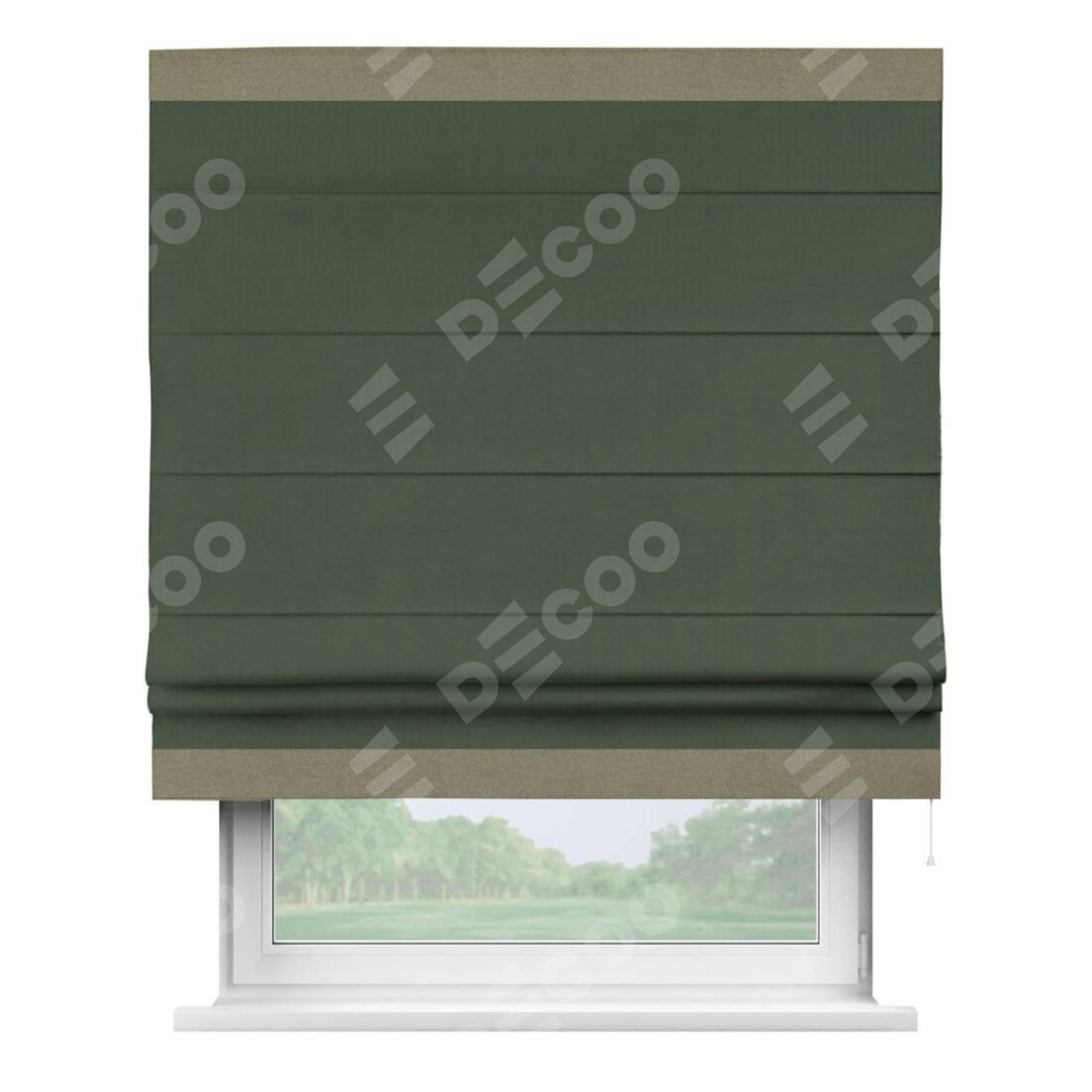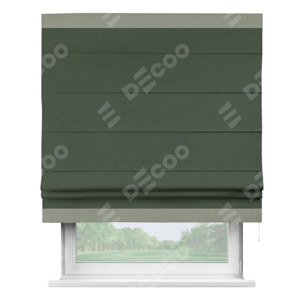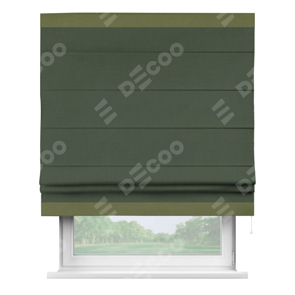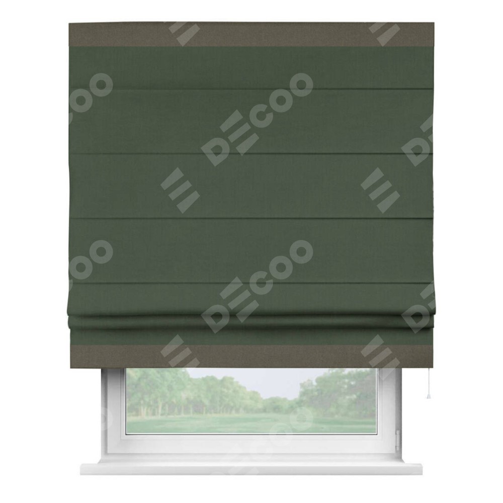 Римская штора «Кортин» с кантом Горизонт, для проема, лён блэкаут зелёный