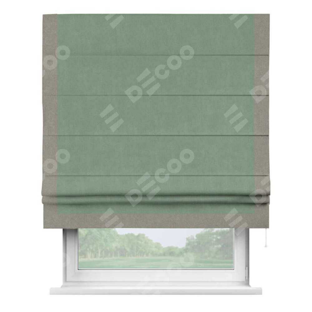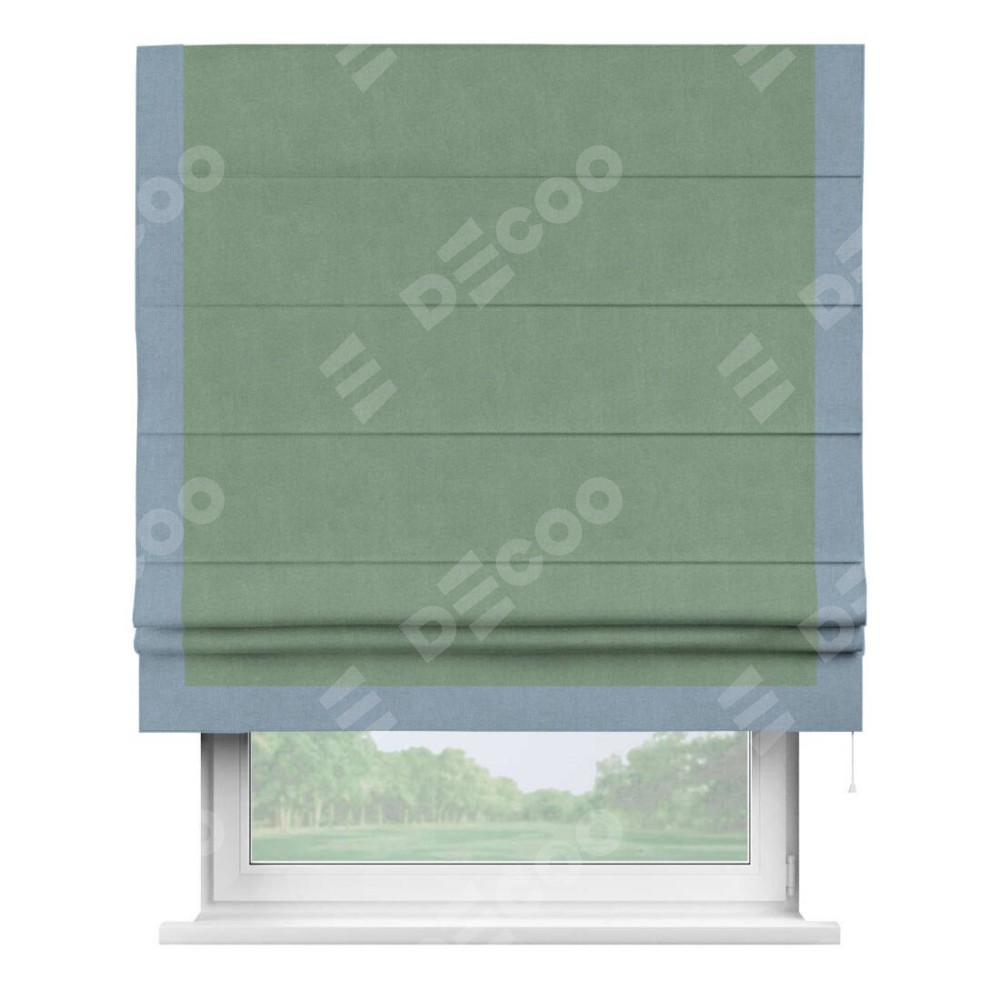 Римская штора «Кортин» с кантом Виктория, для проема, лён блэкаут светло-бирюзовый
