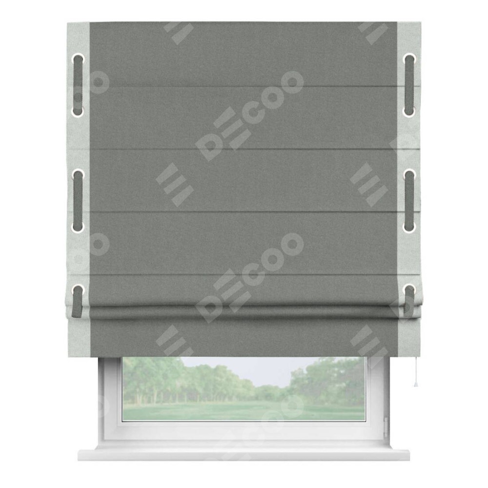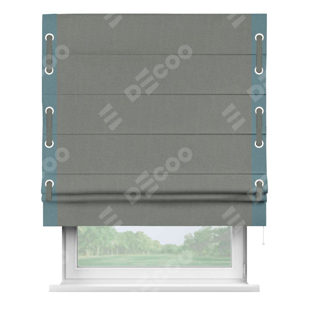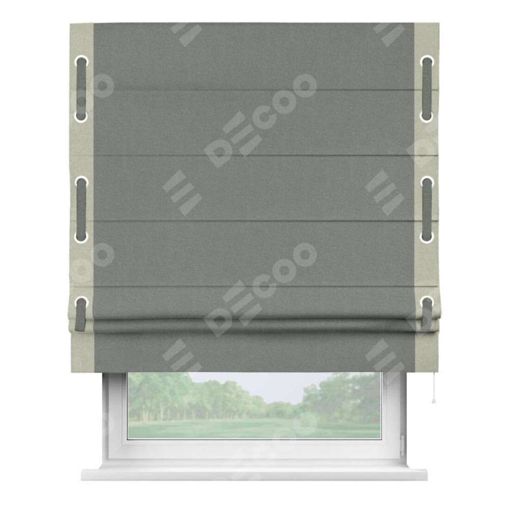 Римская штора «Кортин» с кантом Стрим Дуо (люверсы с пояском), для проема, лён блэкаут серый