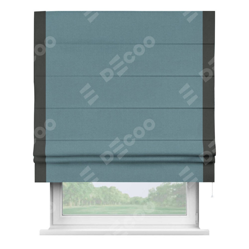 Римская штора «Кортин» с кантом Стрим Дуо, для проема, лён блэкаут синий