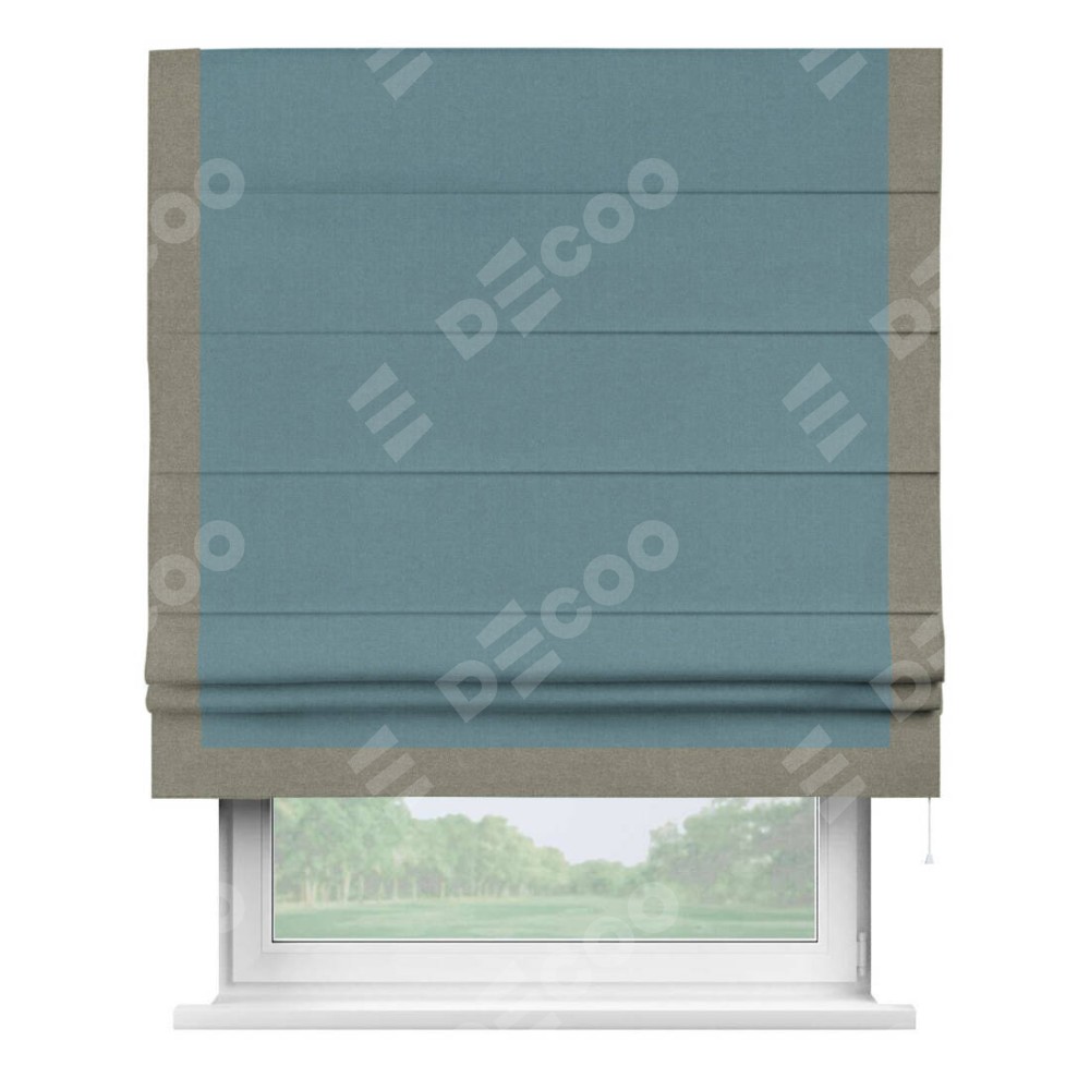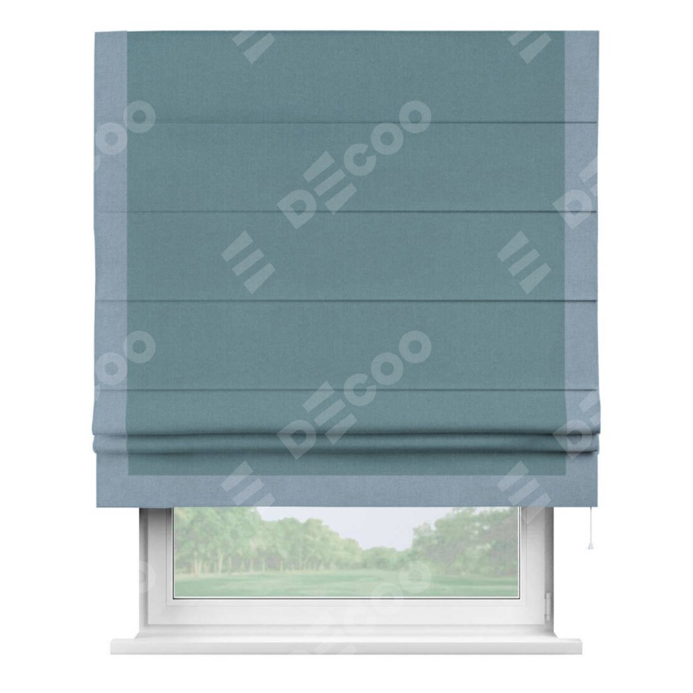 Римская штора «Кортин» с кантом Виктория, для проема, лён блэкаут синий
