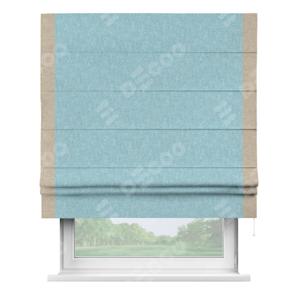 Римская штора «Кортин» с кантом Стрим Дуо, для проема, ткань лён кашемир голубой