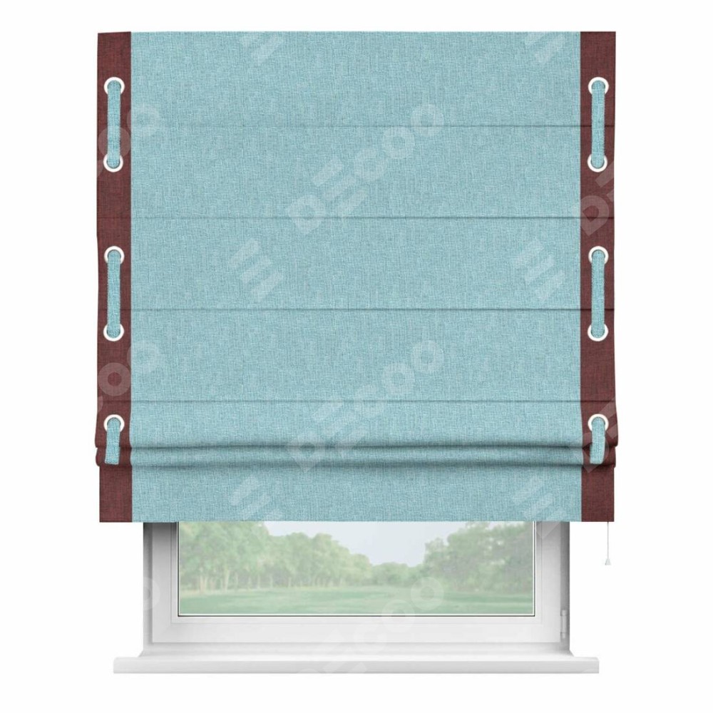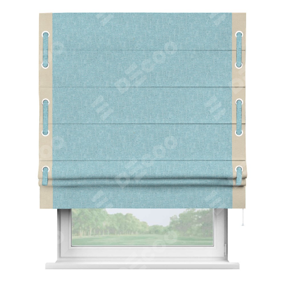 Римская штора «Кортин» с кантом Стрим Дуо (люверсы с пояском), для проема, ткань лён кашемир голубой