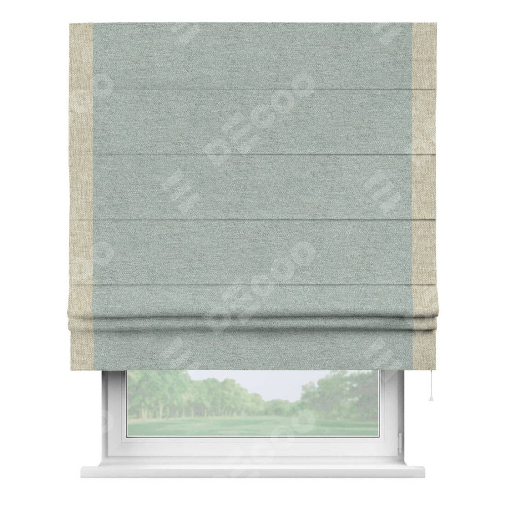 Римская штора производителя «Cortin», используется для проёма, пошита из ткани стиф димаут светло-серый, артикул 44025. Отделка шторы кантом «Стрим Дуо», ткань для канта используется из стифа разной расцветки на выбор. Имеет универсальный механизм и подходит для монтажа: на потолок, на стену и в нишу.