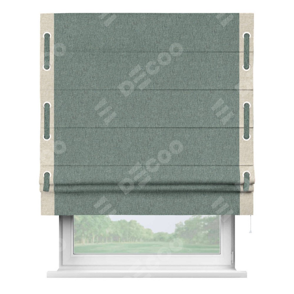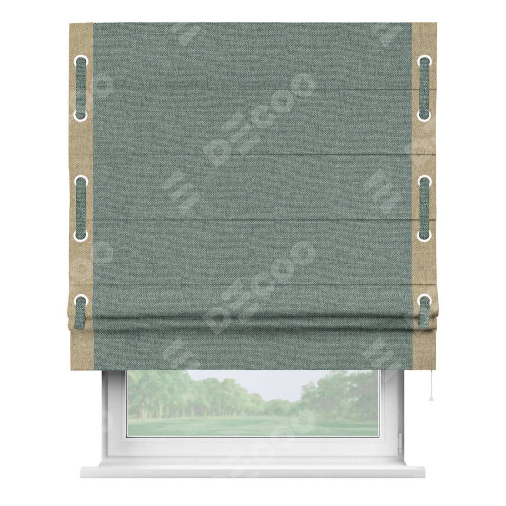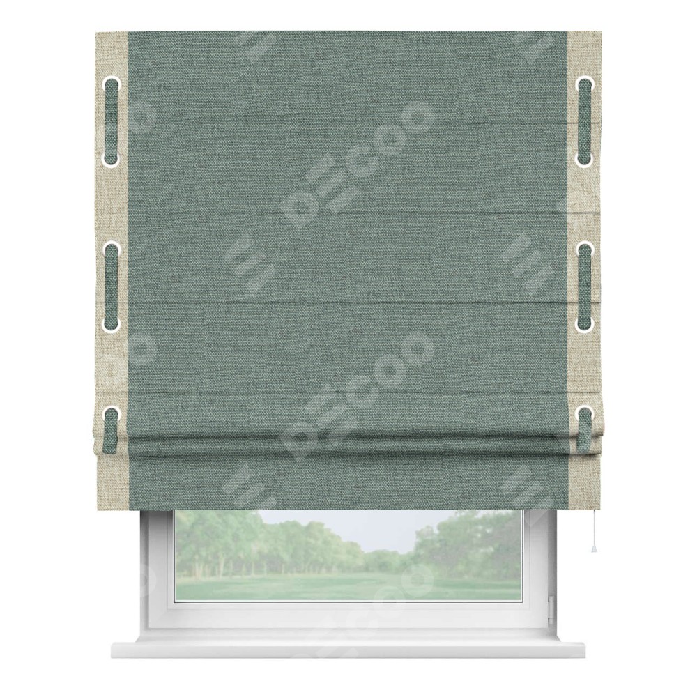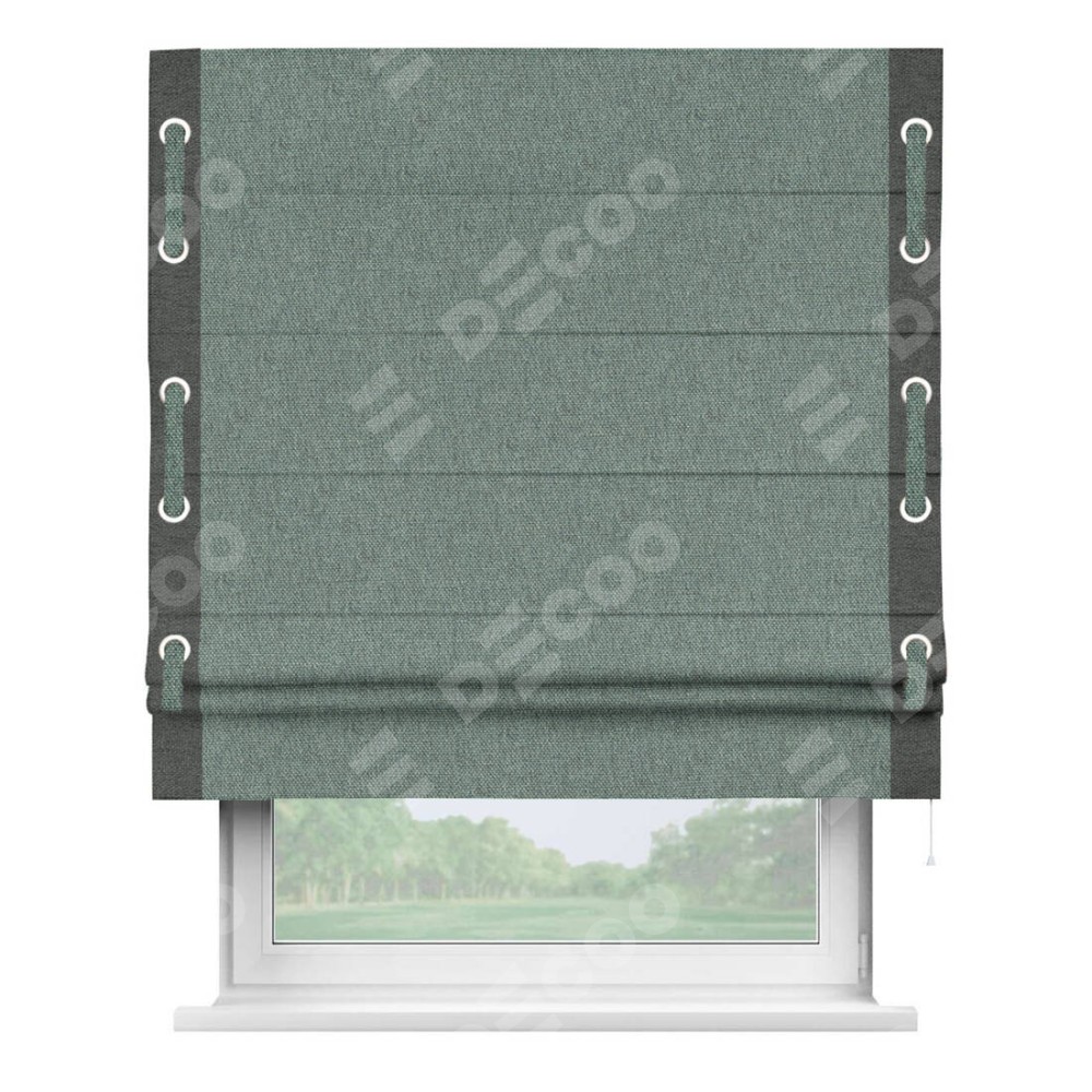 Римская штора «Кортин» с кантом Стрим Дуо (люверсы с пояском), для проема, ткань стиф димаут серо-голубой