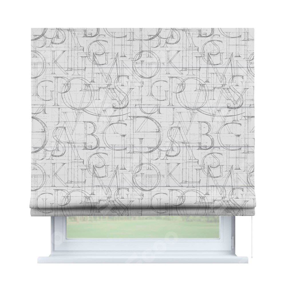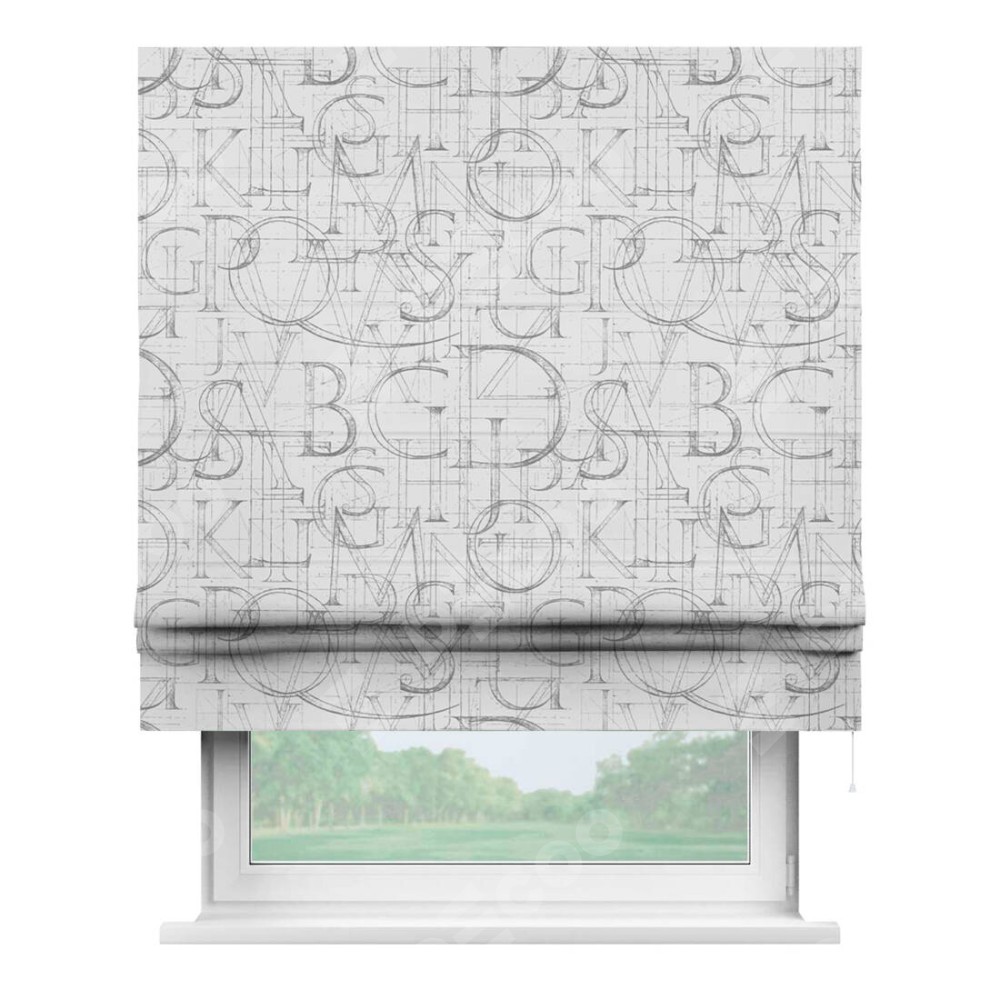 Римская штора производителя «Cortin», используется для проёма, пошита из ткани блэкаут с нанесением сублимационной печати «Античные буквы». Имеет универсальный механизм и подходит для монтажа: на потолок, на стену и в нишу.