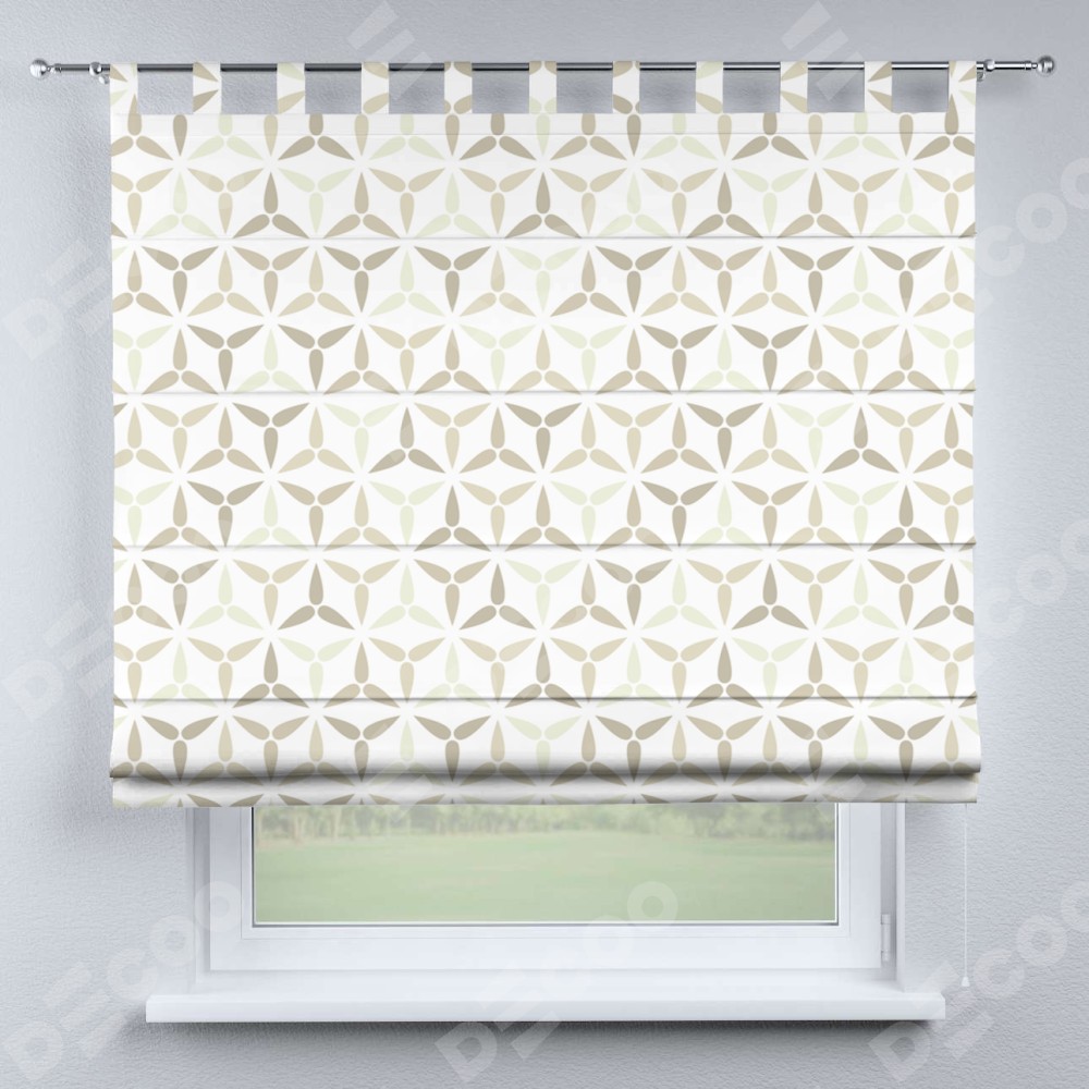 Римская штора производителя «Cortin», используется для проёма, пошита из ткани блэкаут с нанесением сублимационной печати «Бежевая графика». Данная модель пошита на петлях, комплектуется на выбор круглым карнизом и подходит для монтажа на стену. Римская штора на петлях имеет простую систему регулировки высоты, отличительным преимуществом данной модели является простой способ монтажа. Достаточно повесить ее на трубу и штора готова!