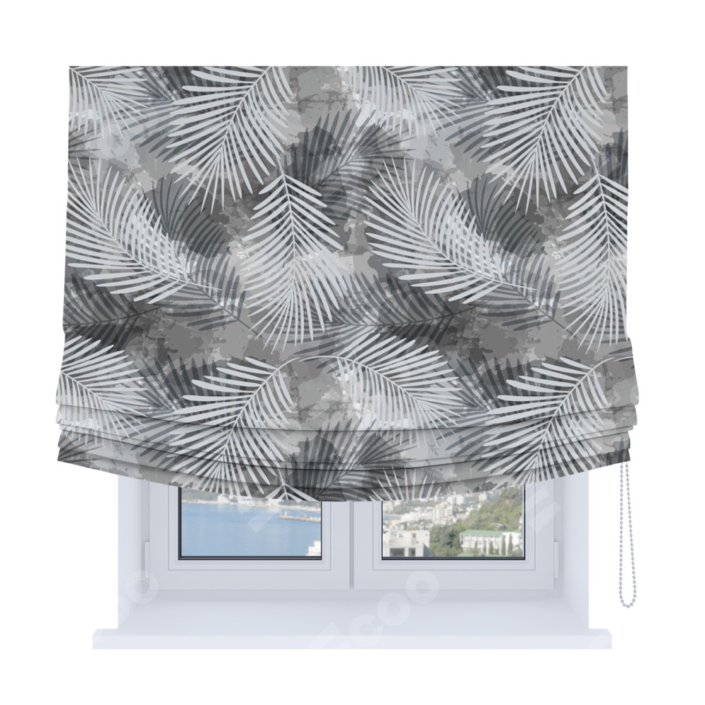 Римская штора Soft производителя «Cortin», используется для проёма, пошита из ткани блэкаут с нанесением сублимационной печати «Листья в тени». Имеет универсальный механизм и подходит для монтажа: на потолок, на стену и в нишу. В отличие от стандартных римских штор, римская штора Soft не имеет горизонтальных вставок и нижнего отвеса. Это позволяет ткани произвольно драпироваться в свободные мягкие складки.