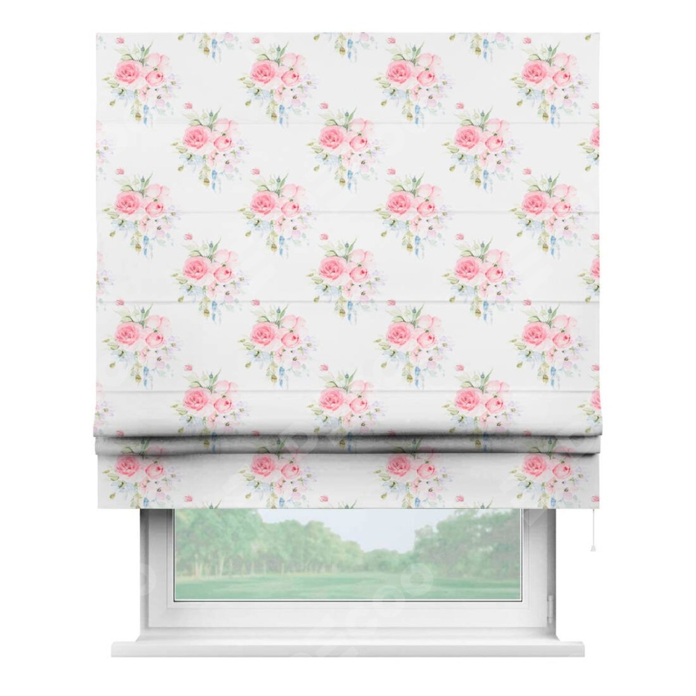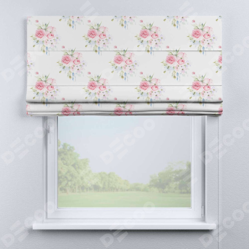Римская штора производителя «Cortin», используется для проёма, пошита из ткани блэкаут с нанесением сублимационной печати «Нежный розарий». Имеет универсальный механизм и подходит для монтажа: на потолок, на стену и в нишу.