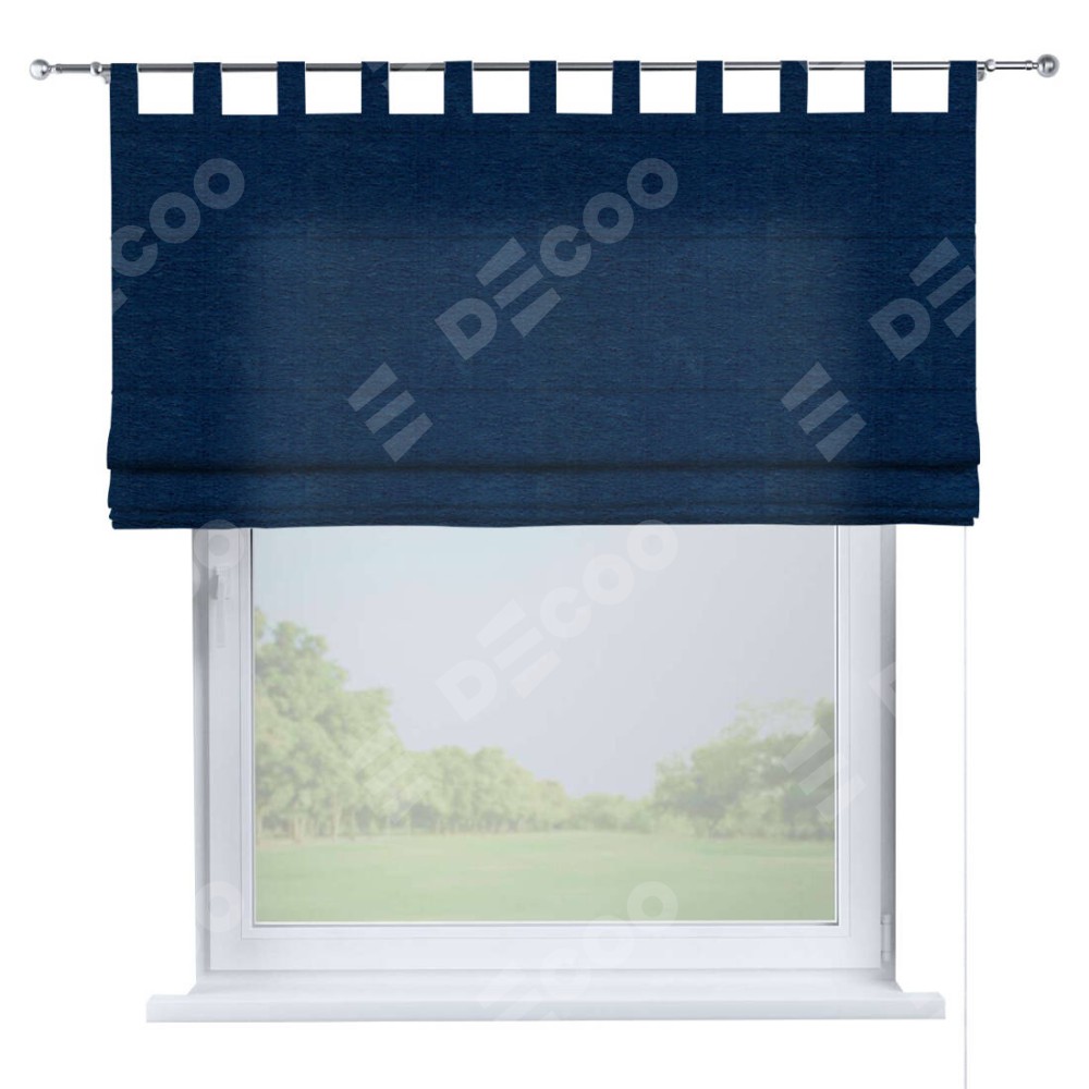 Римская штора производителя «Cortin», используется для проёма, пошита из ткани софт однотонный синий, артикул ткани 42937. Данная модель пошита на петлях, комплектуется на выбор круглым карнизом и подходит для монтажа на стену. Римская штора на петлях имеет простую систему регулировки высоты, отличительным преимуществом данной модели является простой способ монтажа. Достаточно повесить ее на трубу и штора готова!
