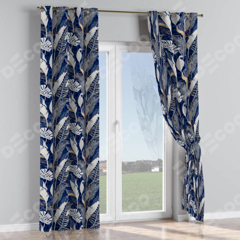 Комплект штор на люверсах «Сине-золотые джунгли»