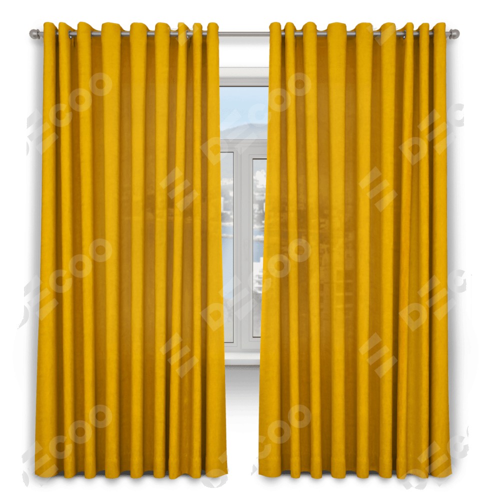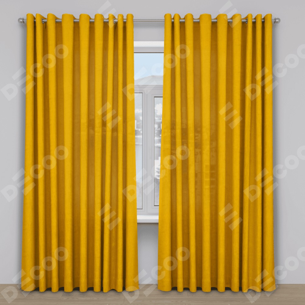 Комплект прямых штор, от производителя «Cortin», пошиты из ткани вельвет желтый, артикул ткани 85547. Данная модель пошита на люверсах, комплектуется на выбор круглым карнизом и подходит для монтажа на стену. Прямые шторы на люверсах шьются по стандарту с коэффициентом 1/2 (на 100 см. ширины проёма 200 см. ширины ткани), отличительным преимуществом данной модели является простой способ монтажа. Достаточно повесить ее на трубу и штора готова!