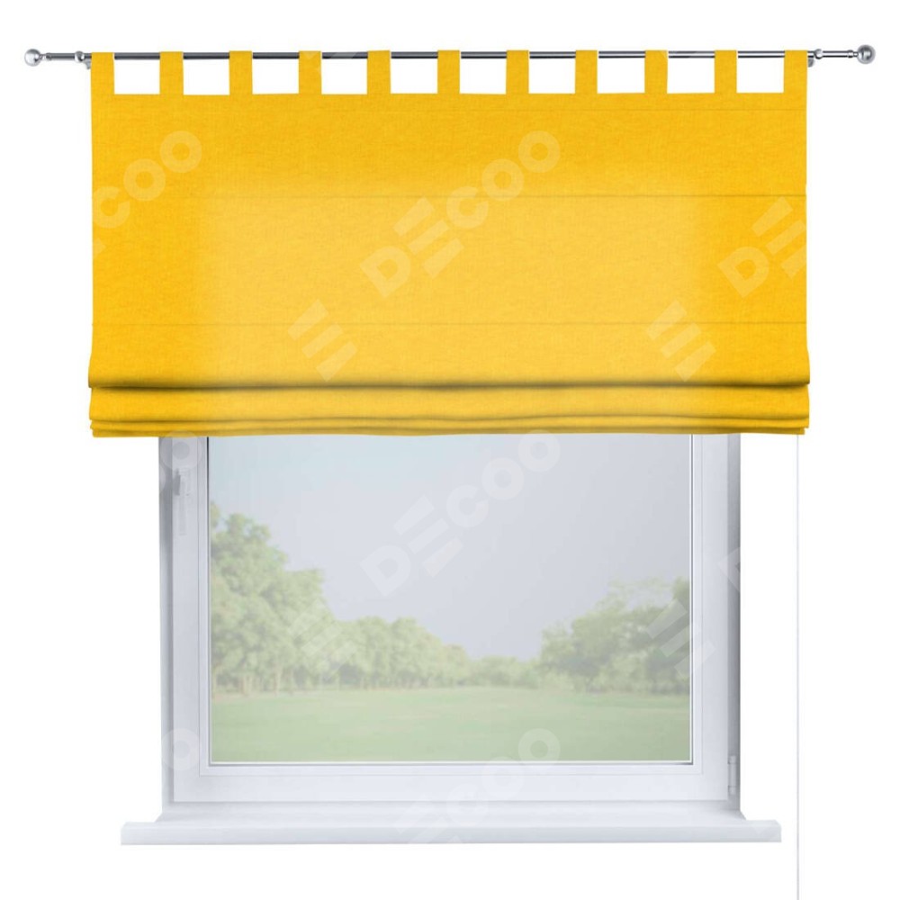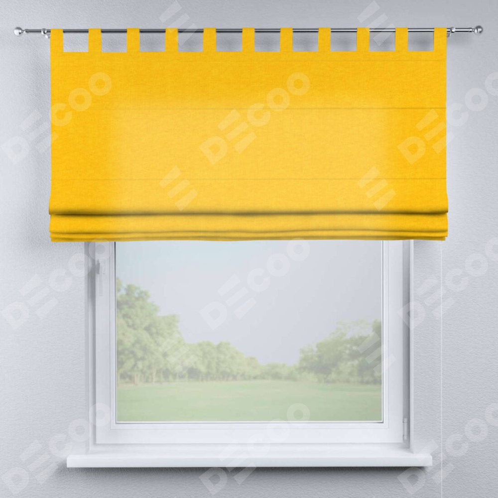 Римская штора производителя «Cortin», используется для проёма, пошита из ткани канвас желтый, артикул ткани v-344. Данная модель пошита на петлях, комплектуется на выбор круглым карнизом и подходит для монтажа на стену. Римская штора на петлях имеет простую систему регулировки высоты, отличительным преимуществом данной модели является простой способ монтажа. Достаточно повесить ее на трубу и штора готова!