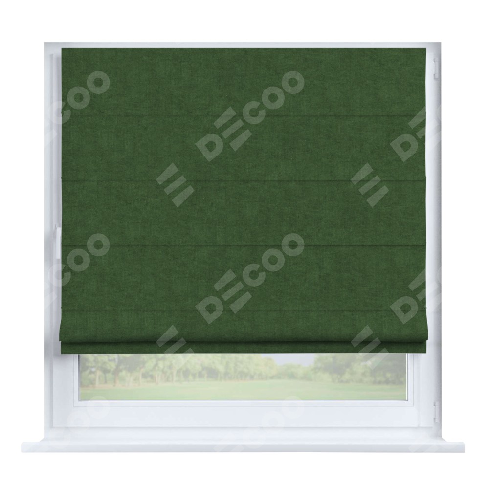 Римская штора производителя «Cortin», устанавливается на створку окна, пошита из ткани канвас зелёный, артикул v-16. Штора шьётся по индивидуальным размерам, для данного типа римской шторы возможная ширина от 35 до 150 см., высота до 250 см.