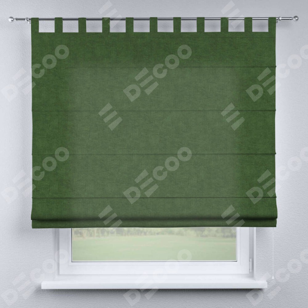 Римская штора производителя «Cortin», используется для проёма, пошита из ткани канвас зелёный, артикул ткани v-16. Данная модель пошита на петлях, комплектуется на выбор круглым карнизом и подходит для монтажа на стену. Римская штора на петлях имеет простую систему регулировки высоты, отличительным преимуществом данной модели является простой способ монтажа. Достаточно повесить ее на трубу и штора готова!