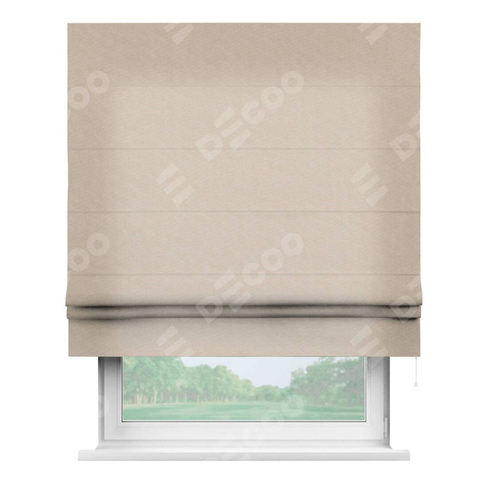 Римская штора производителя «Cortin», используется для проёма, пошита из ткани канвас кофе с молоком, артикул ткани v-07. Имеет универсальный механизм и подходит для монтажа: на потолок, на стену и в нишу.
