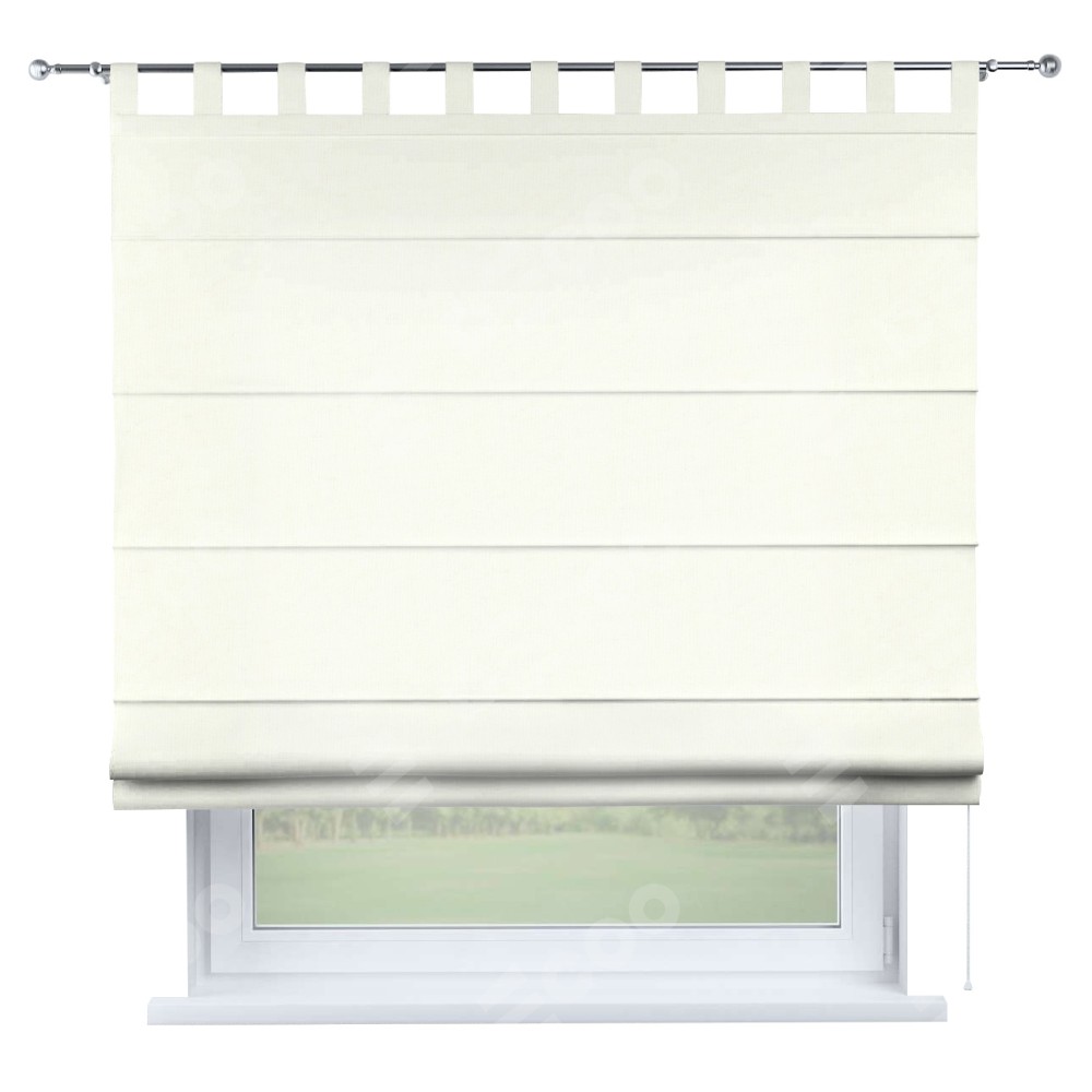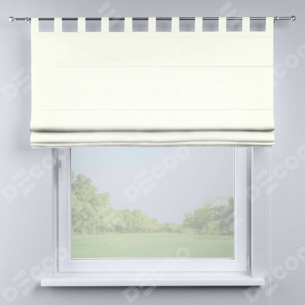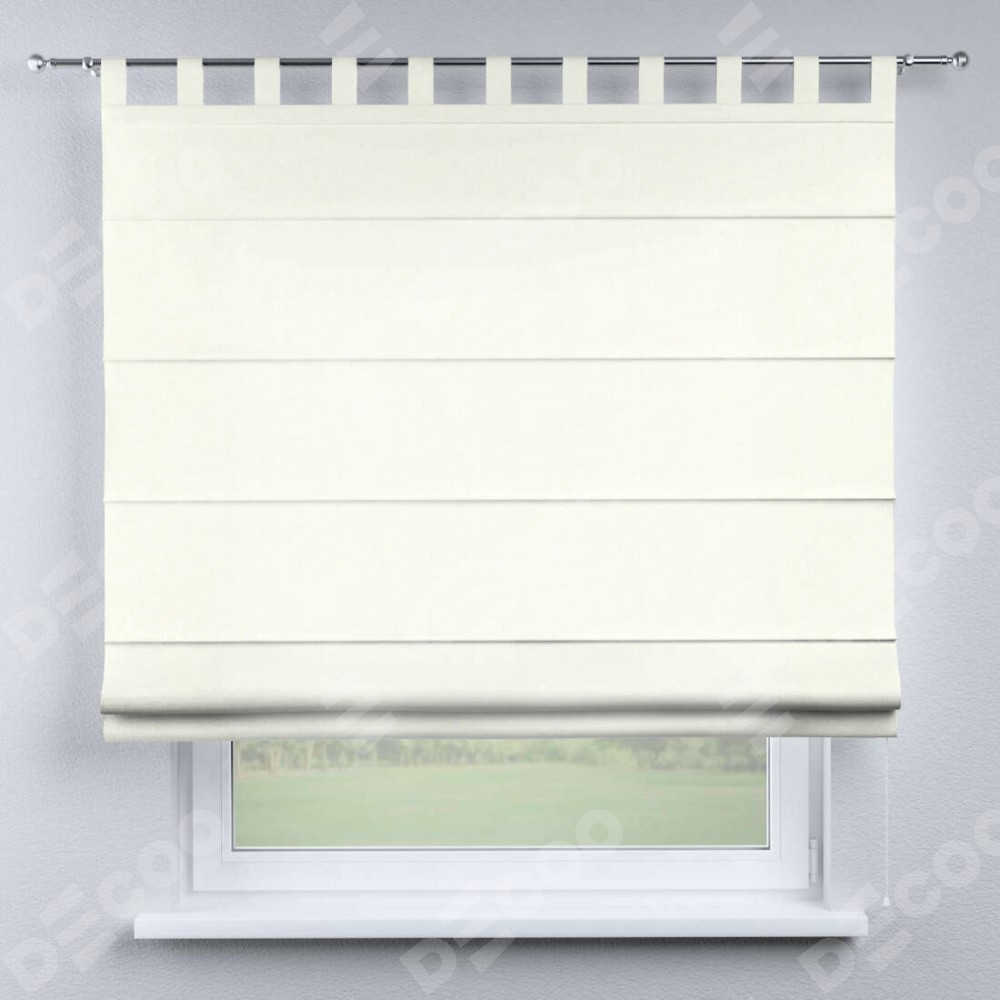 Римская штора производителя «Cortin», используется для проёма, пошита из ткани канвас молочный, артикул ткани v-93. Данная модель пошита на петлях, комплектуется на выбор круглым карнизом и подходит для монтажа на стену. Римская штора на петлях имеет простую систему регулировки высоты, отличительным преимуществом данной модели является простой способ монтажа. Достаточно повесить ее на трубу и штора готова!
