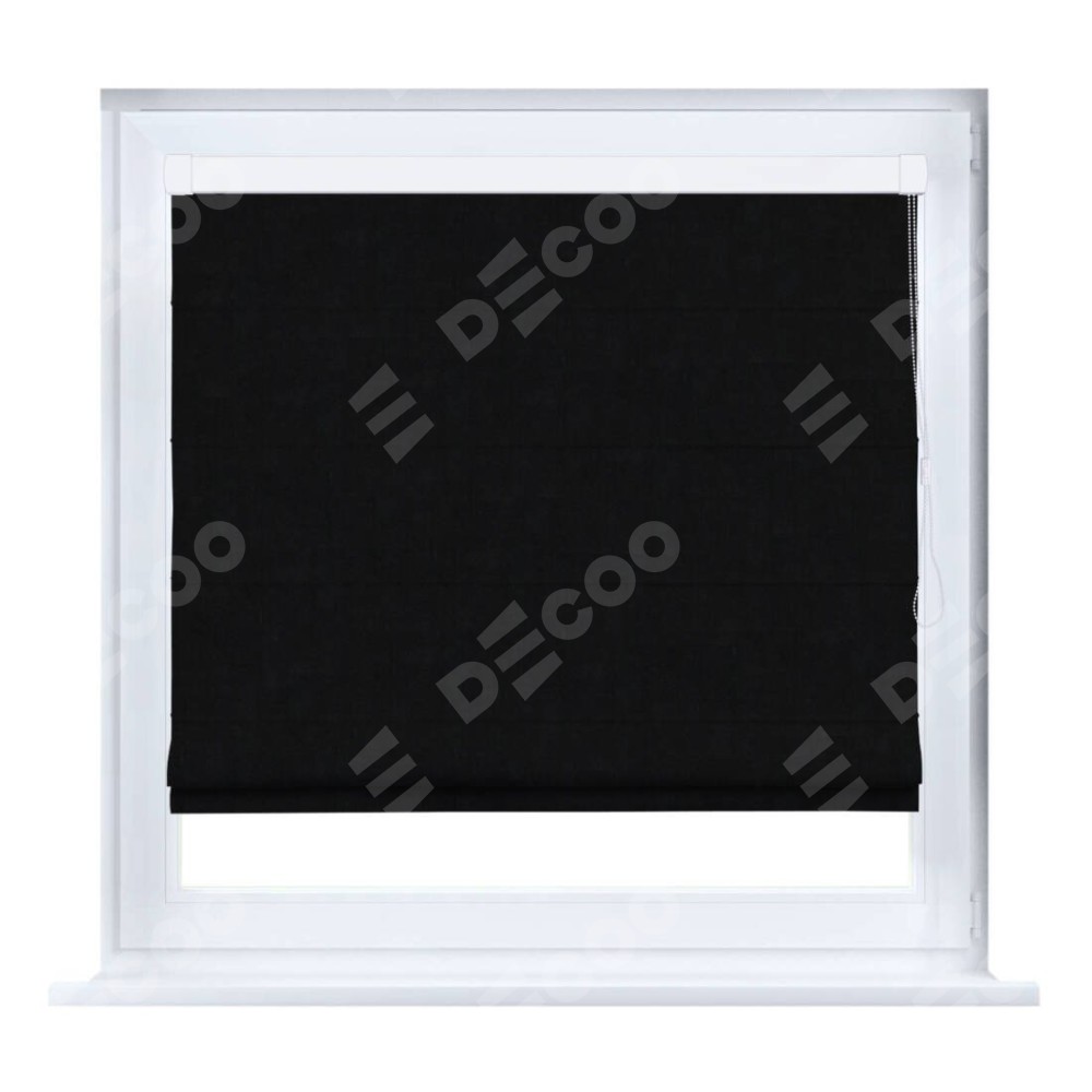 Римская штора производителя «Cortin», устанавливается на створку окна, пошита из ткани канвас черный, артикул v-194. Штора шьётся по индивидуальным размерам, для данного типа римской шторы возможная ширина от 35 до 150 см., высота до 250 см.