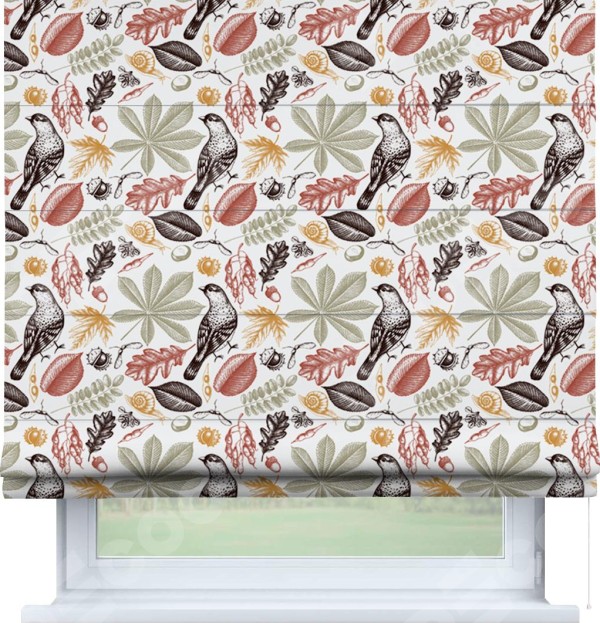 Римская штора производителя «Cortin», используется для проёма, пошита из ткани блэкаут с нанесением сублимационной печати «Краски осени». Имеет универсальный механизм и подходит для монтажа: на потолок, на стену и в нишу.