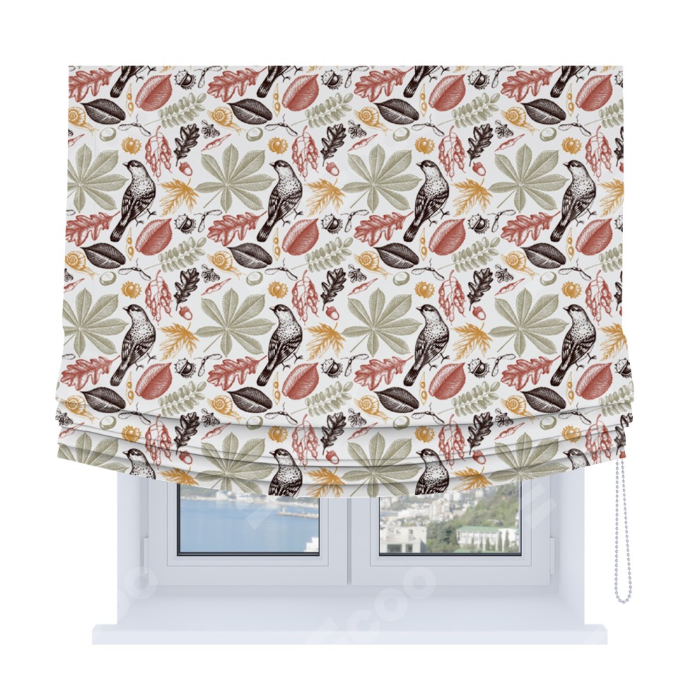 Римская штора Soft производителя «Cortin», используется для проёма, пошита из ткани блэкаут с нанесением сублимационной печати «Краски осени». Имеет универсальный механизм и подходит для монтажа: на потолок, на стену и в нишу. В отличие от стандартных римских штор, римская штора Soft не имеет горизонтальных вставок и нижнего отвеса. Это позволяет ткани произвольно драпироваться в свободные мягкие складки.