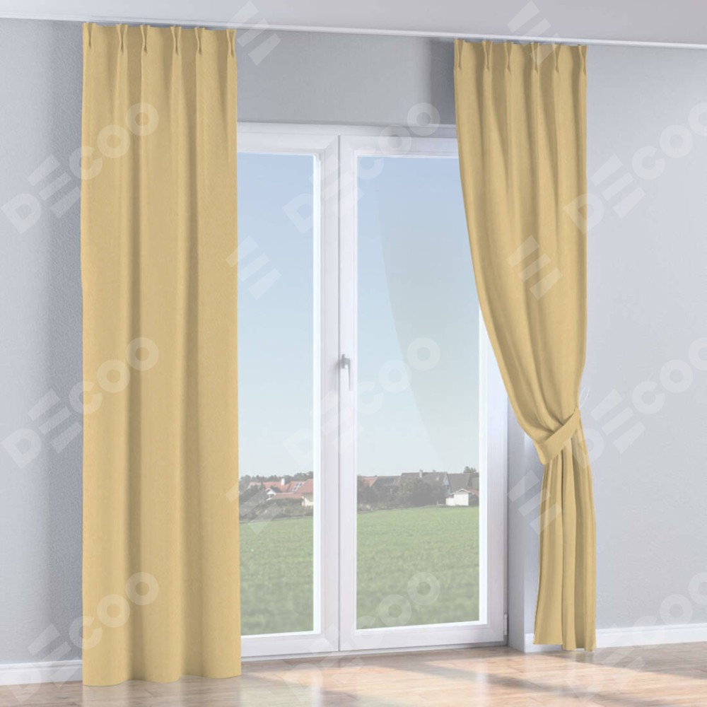 Комплект прямых штор, от производителя «Cortin», пошиты из ткани канвас бежевый, артикул ткани v-96. С изнаночной стороны в верхней части штор пристрачивается шторная лента с декоративными складками «Кустик». Для создания элегантных складок прямые шторы шьются по стандарту с коэффициентом 1:2 (на 100 см. ширины проёма 200 см. ширины ткани).