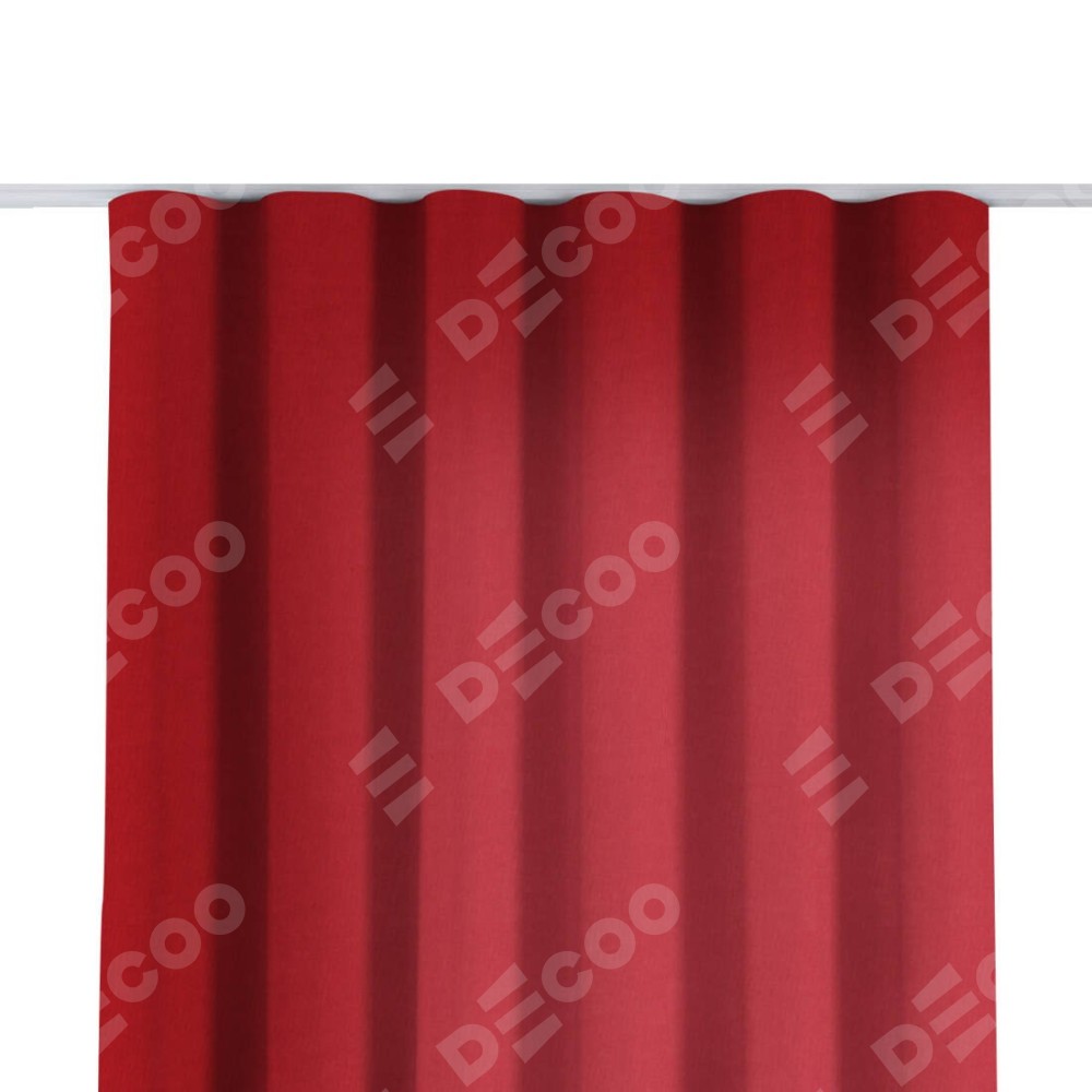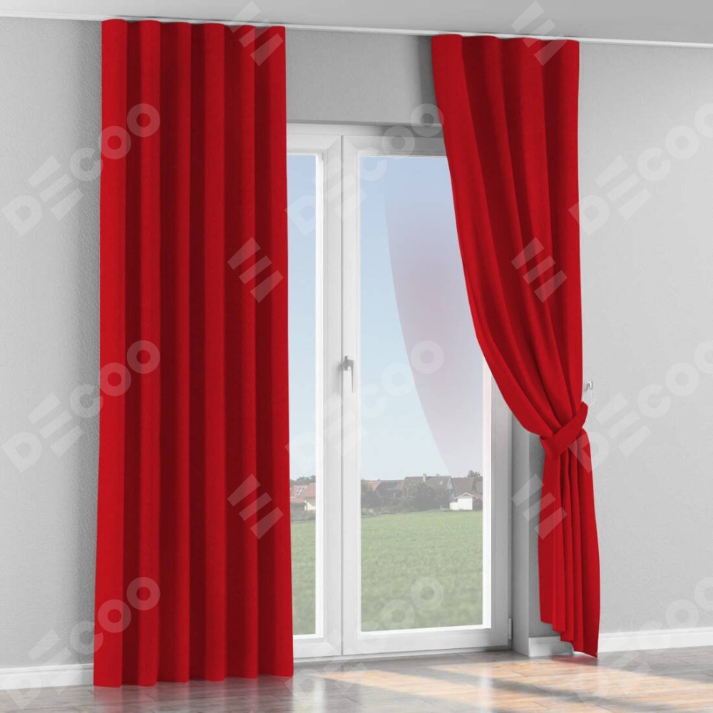 Комплект прямых штор, от производителя «Cortin», пошиты из ткани канвас красный, артикул ткани v-113. С изнаночной стороны в верхней части штор пристрачивается шторная лента с декоративными складками «Волна». Для создания элегантных складок прямые шторы шьются по стандарту с коэффициентом 1:2 (на 100 см. ширины проёма 200 см. ширины ткани).