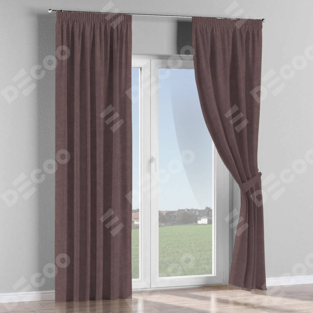 Комплект прямых штор, от производителя «Cortin», пошиты из ткани канвас махагон, артикул ткани v-37. С изнаночной стороны в верхней части штор пристрачивается шторная лента с декоративными складками «Карандаш». Для создания элегантных складок прямые шторы шьются по стандарту с коэффициентом 1:2 (на 100 см. ширины проёма 200 см. ширины ткани).