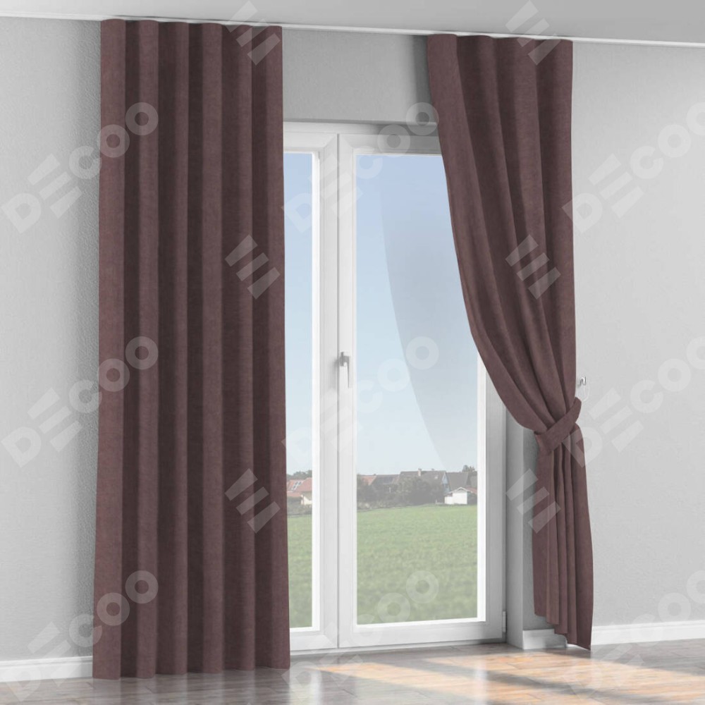 Комплект прямых штор, от производителя «Cortin», пошиты из ткани канвас махагон, артикул ткани v-37. С изнаночной стороны в верхней части штор пристрачивается шторная лента с декоративными складками «Волна». Для создания элегантных складок прямые шторы шьются по стандарту с коэффициентом 1:2 (на 100 см. ширины проёма 200 см. ширины ткани).