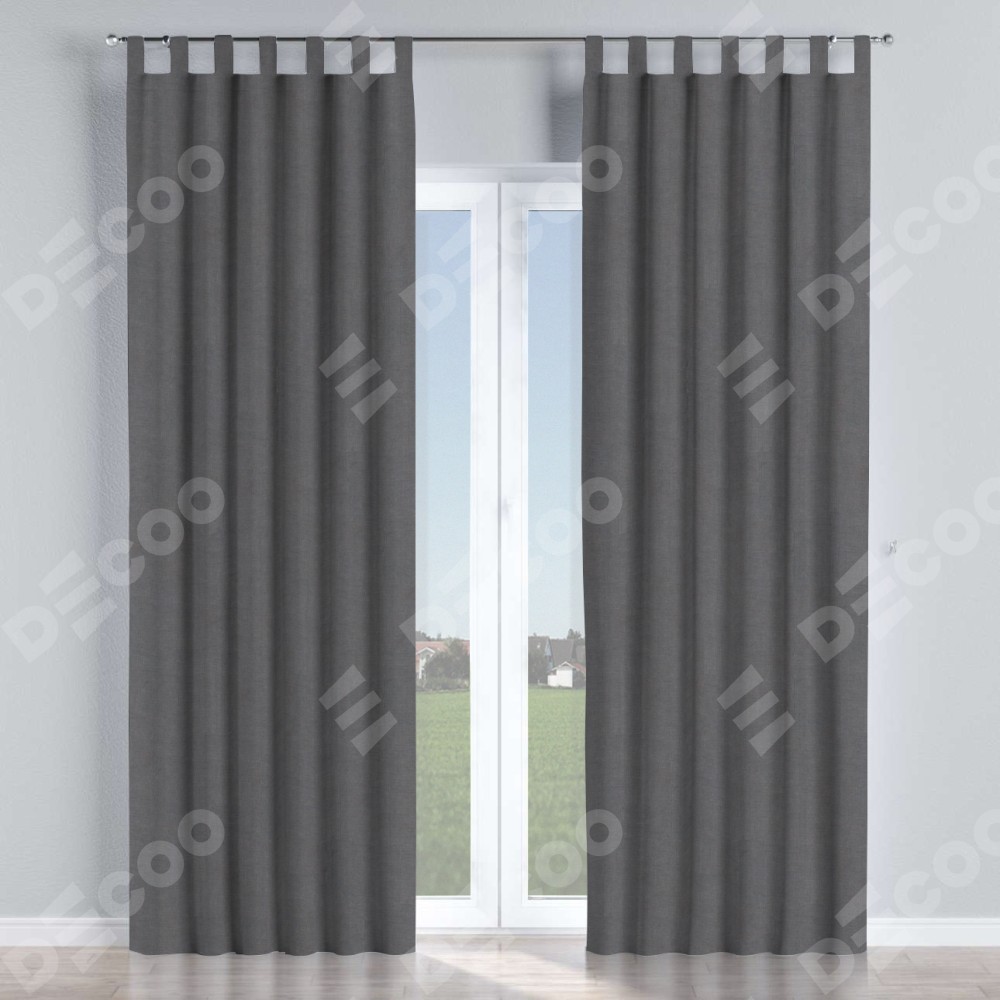 Комплект прямых штор, от производителя «Cortin», пошиты из ткани канвас мокрый асфальт, артикул ткани v-1083. Данная модель пошита на петлях, комплектуется на выбор круглым карнизом и подходит для монтажа на стену или потолок. Прямые шторы на петлях шьются по стандарту с коэффициентом 1/2 (на 100 см. ширины проёма 200 см. ширины ткани), отличительным преимуществом данной модели является простой способ монтажа. Достаточно повесить ее на трубу и штора готова!