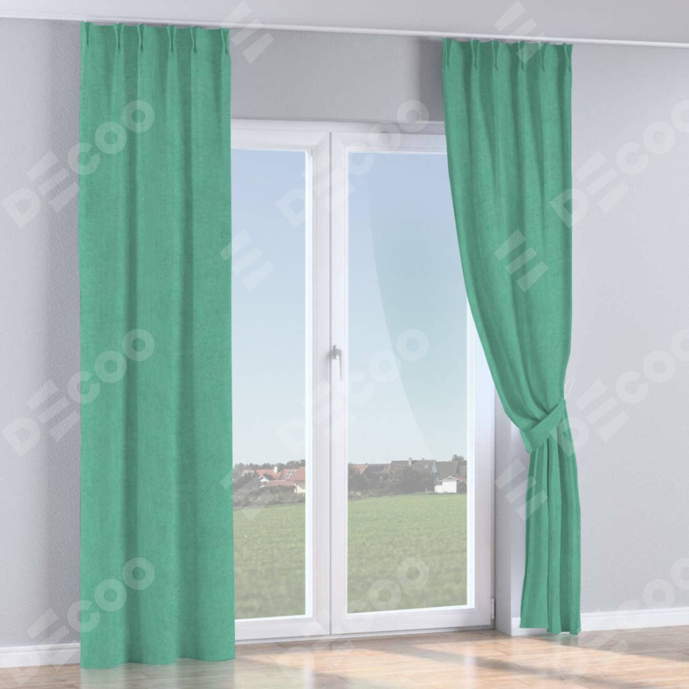 Комплект прямых штор, от производителя «Cortin», пошиты из ткани канвас канвас мятный, артикул ткани v-248. С изнаночной стороны в верхней части штор пристрачивается шторная лента с декоративными складками «Кустик». Для создания элегантных складок прямые шторы шьются по стандарту с коэффициентом 1:2 (на 100 см. ширины проёма 200 см. ширины ткани).