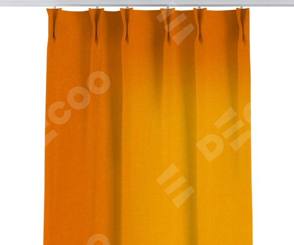 Комплект прямых штор, от производителя «Cortin», пошиты из ткани канвас оранжевый, артикул ткани v-106. С изнаночной стороны в верхней части штор пристрачивается шторная лента с декоративными складками «Кустик». Для создания элегантных складок прямые шторы шьются по стандарту с коэффициентом 1:2 (на 100 см. ширины проёма 200 см. ширины ткани).