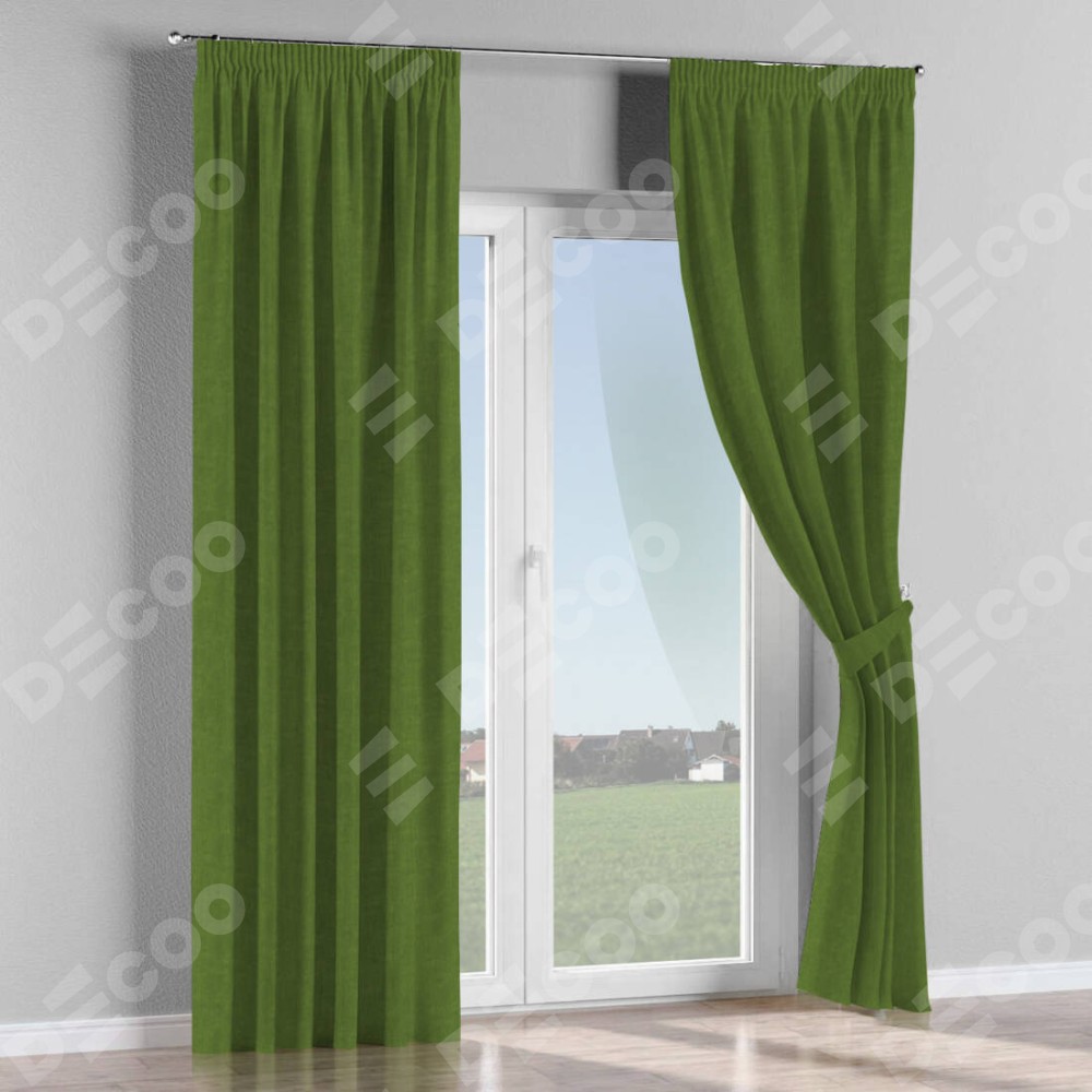 Комплект прямых штор, от производителя «Cortin», пошиты из ткани канвас трава, артикул ткани v-473. С изнаночной стороны в верхней части штор пристрачивается шторная лента с декоративными складками «Карандаш». Для создания элегантных складок прямые шторы шьются по стандарту с коэффициентом 1:2 (на 100 см. ширины проёма 200 см. ширины ткани).