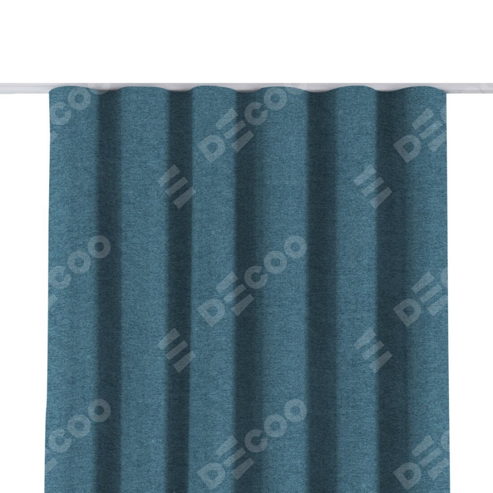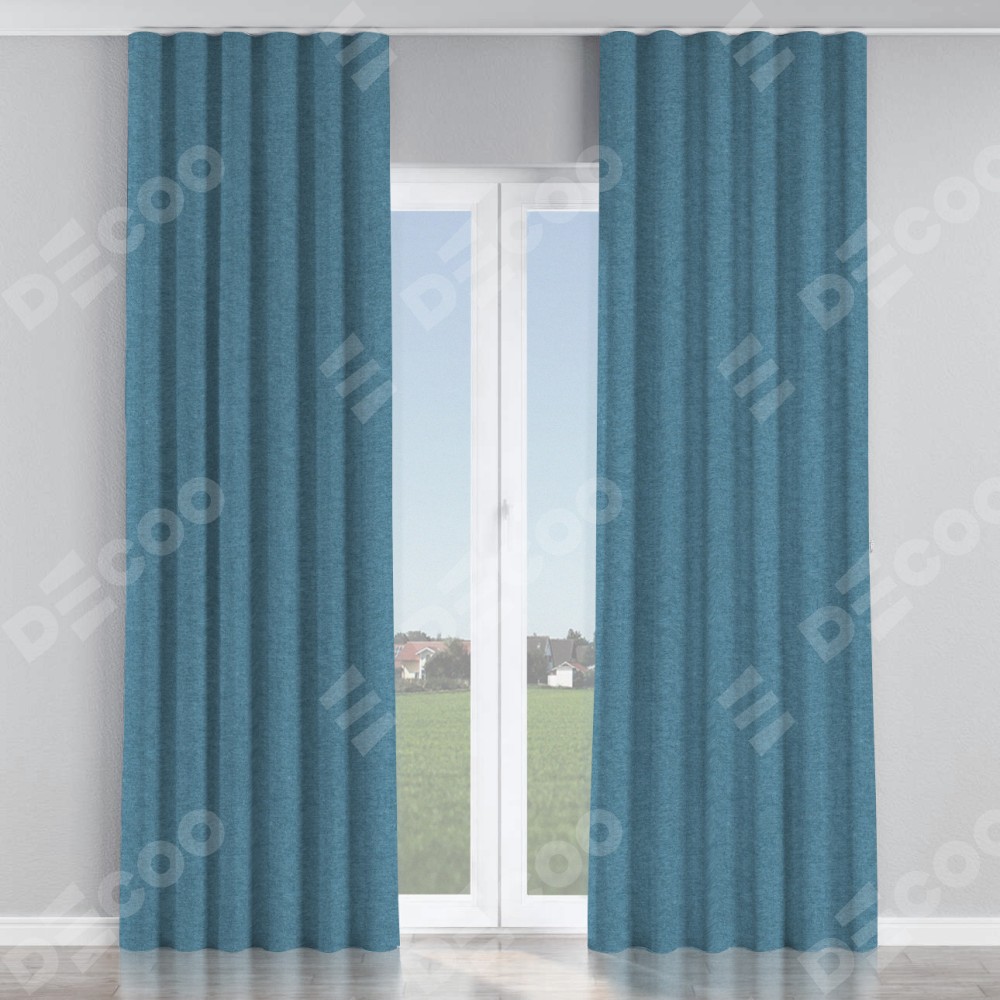 Комплект прямых штор, от производителя «Cortin», пошиты из ткани твид блэкаут светло-синий, артикул ткани 90935. С изнаночной стороны в верхней части штор пристрачивается шторная лента с декоративными складками «Волна». Для создания элегантных складок прямые шторы шьются по стандарту с коэффициентом 1:2 (на 100 см. ширины проёма 200 см. ширины ткани).